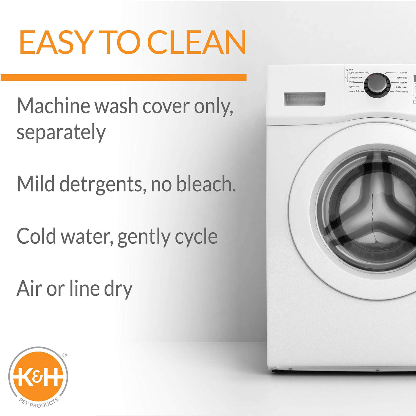 Q: Is the K&H Pet Products Dog Cot Replacement Cover machine washable?A: Yes, the K&H Pet Cot Replacement Cover is machine washable, making it easy to clean and maintain. You can also hose it off outdoors for quick cleaning.
