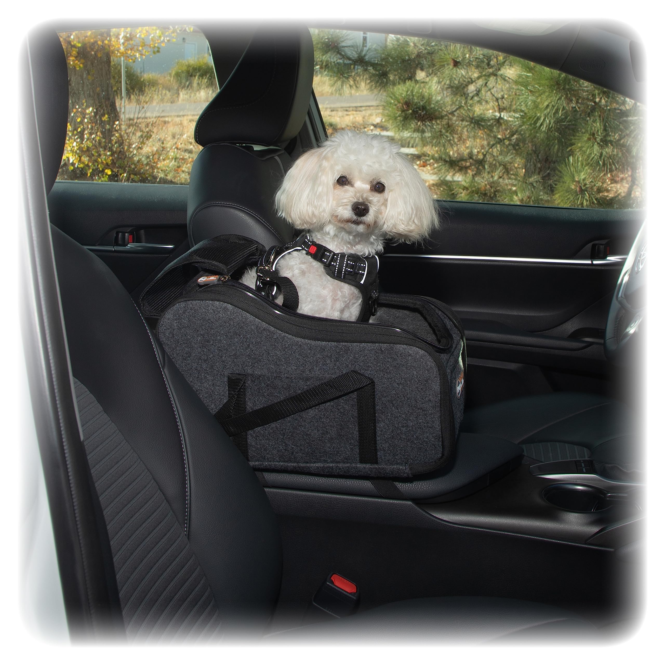 K&H Pet Products Portable Console Booster Dog Car Seat & Carrier for Small Dogs & Cats, Luxury Car Seat for Center Car Armrest I