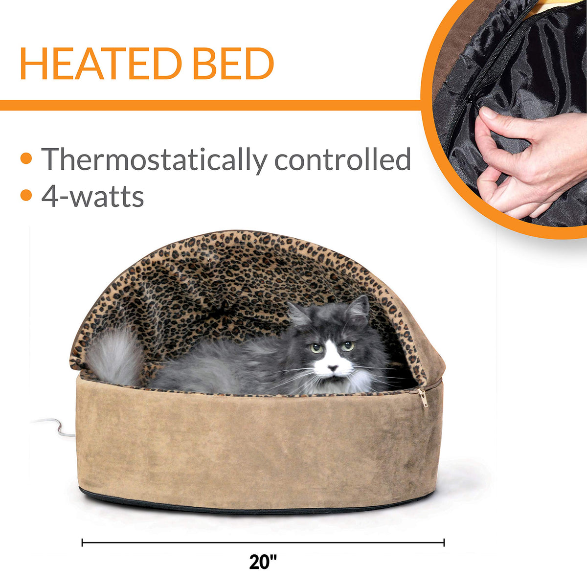 K&H Pet Products Thermo-Kitty Bed Deluxe Indoor Heated Cat Bed Tan/Leopard Large 20 Inches