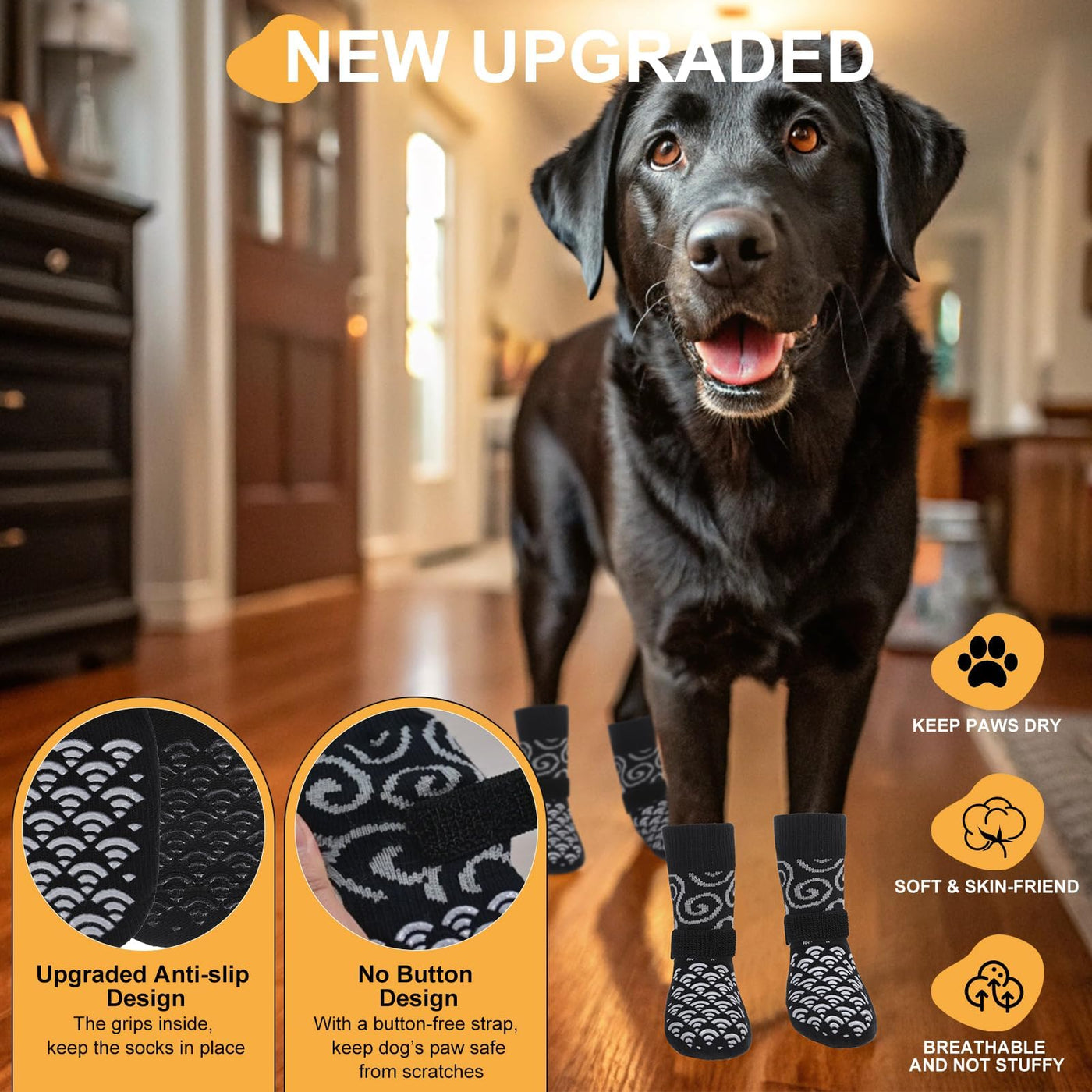 K9Meme Anti Slip Dog Socks With Four Sides Grips For Hardwood Floors, Extra Traction Control No Twist - Dog Shoes Paw Protector