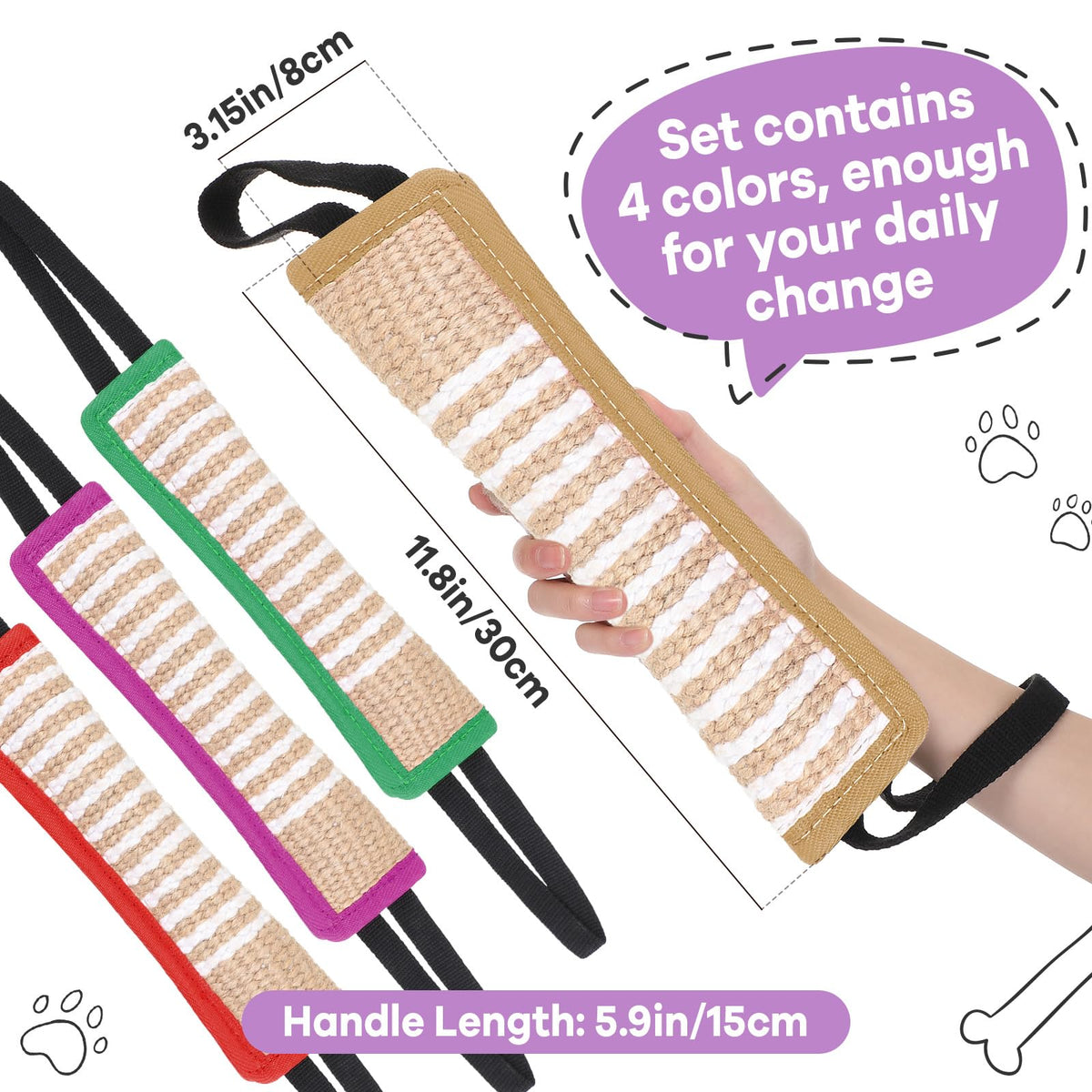 Features: This Dog Training Chew Pillow Is A Nice Interactive, Training And Exercise Toy, Suitable For Indoor Or Outdoor Play. It'S Designed For Tug Of War, Agility Training, Ring Sport, And More Activities, Which Can Promote Your Relationship With Your Puppy. These Dog Chew Sleeve Sticks Come With A Variety Of Colors, Including Green, Earthy Yellow, Purple, Red And White Lace. Diverse Colors Can Satisfy Your Pet Dog'S Different Favors. Specifications: Material: Jute Color: Green, Earthy Yellow, Purple, Red And White Lacesize: About 11.81 X 3.15 Inches Package Includes: 4 X Dog Tug Toynotes: Manual Measurement, Please Allow Slight Errors In Size. The Color May Exist A Slight Difference Due To Different Screen Displays. Choking Risk May Exist, Adult'S Supervision Is Needed When It Is Played By Your Pets.