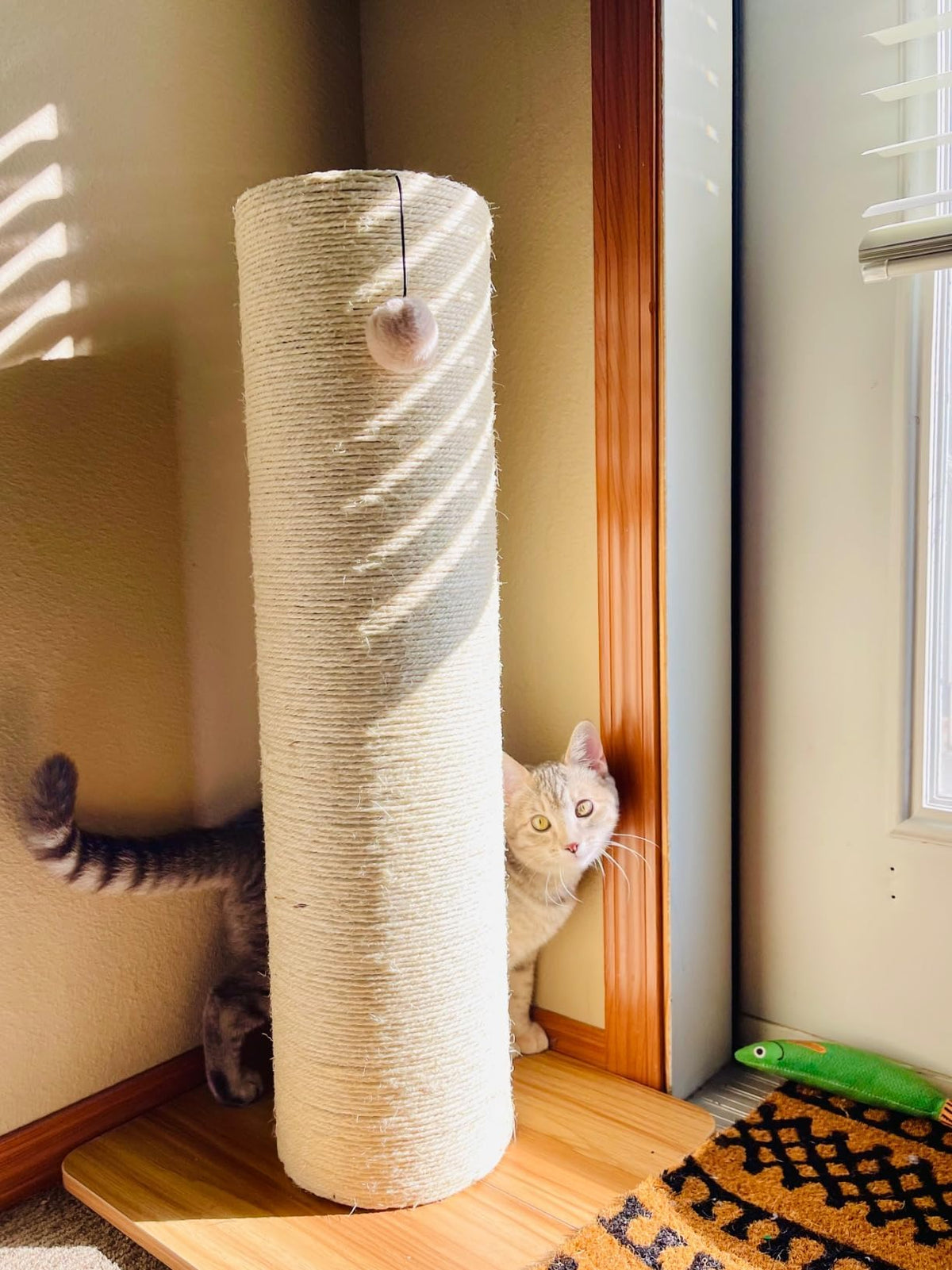 Premium Material - Our Cat Scratching Posts For Indoor Cats Is Made Of 100% Natural Sisal. The Base Is Made Of 0.6 Sturdy Thick Wooden Board, Safe And Stable, The Base With Shims To Avoid Shaking, Providing Reliability And Stability.