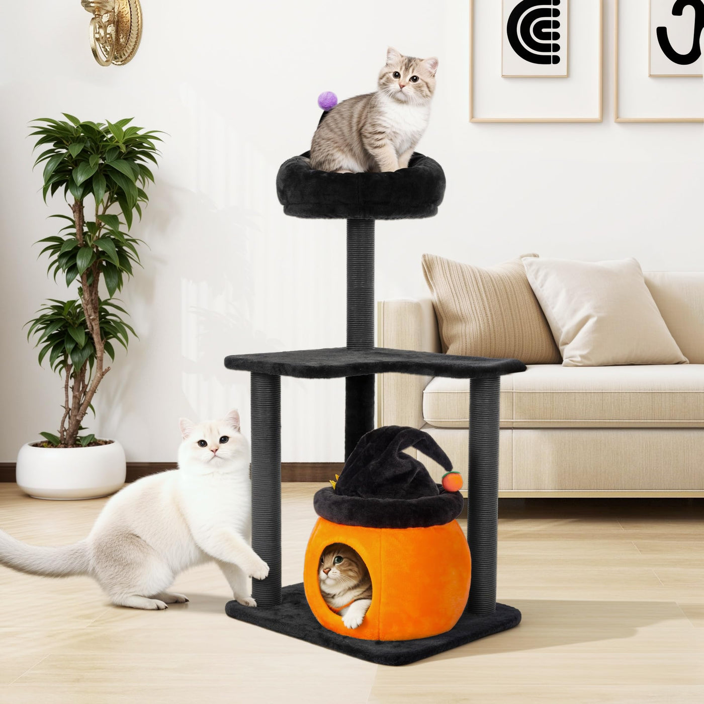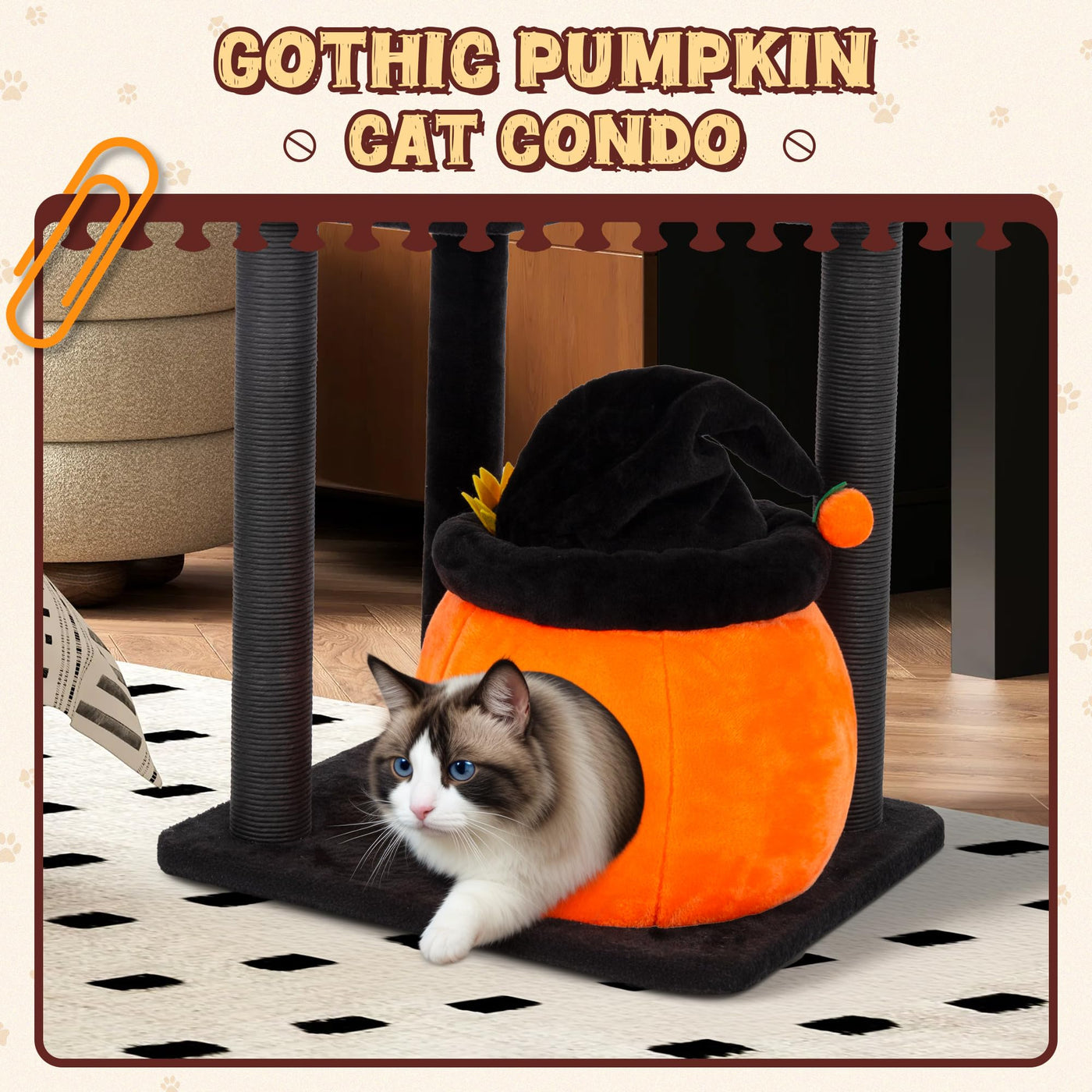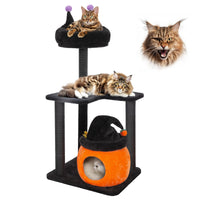 Kamaboko Gothic Cat Tree, 44.8 Black Cat Tower For Indoor Cats With Sisal Scratching Posts, Spacious Cat Condo, Self Groomer,