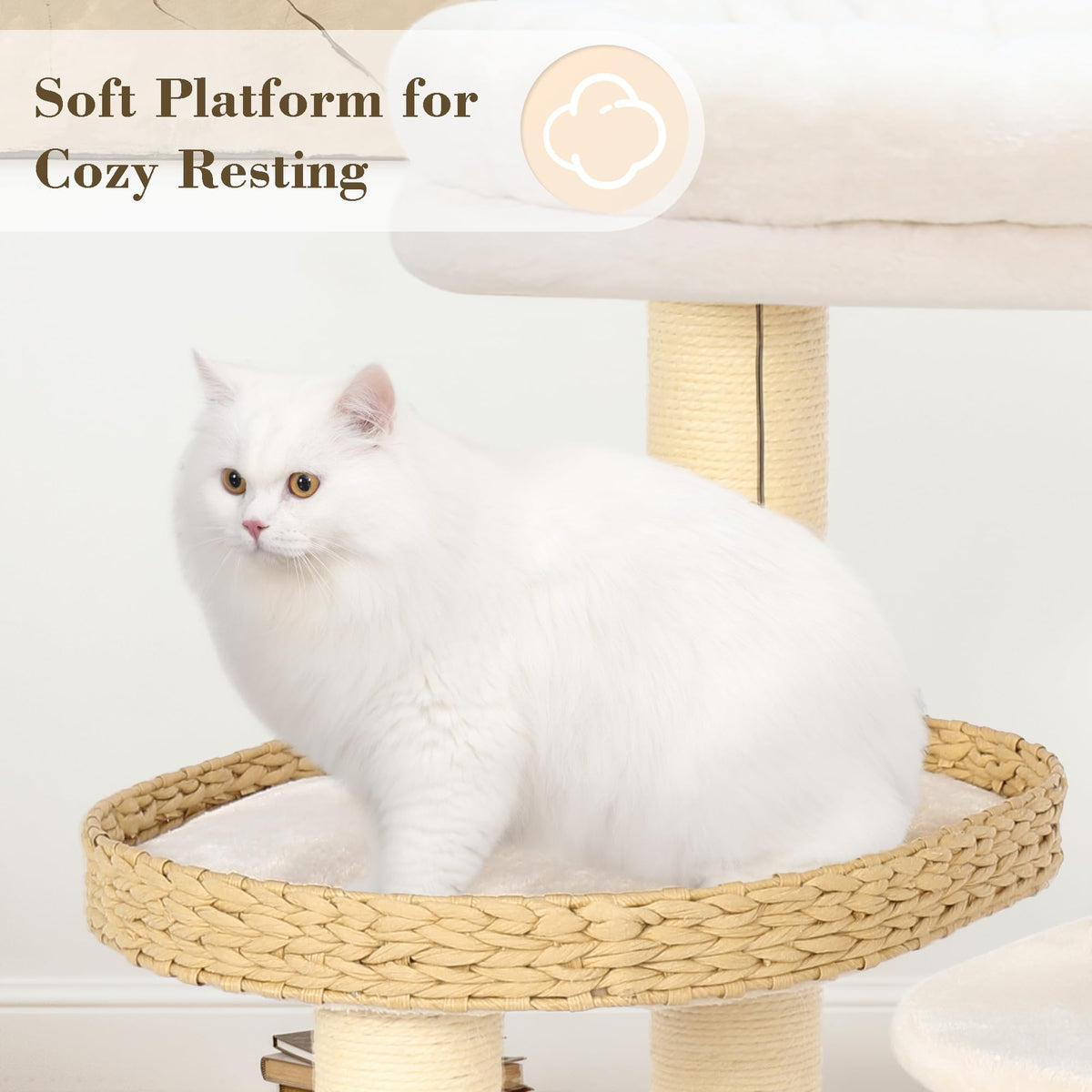 Kamaboko Modern Cat Tree, 53 Tall Cat Trees For Indoor Cats, Cat Condo Natural Sisal With Scratching Posts, Hand-Woven Tower &