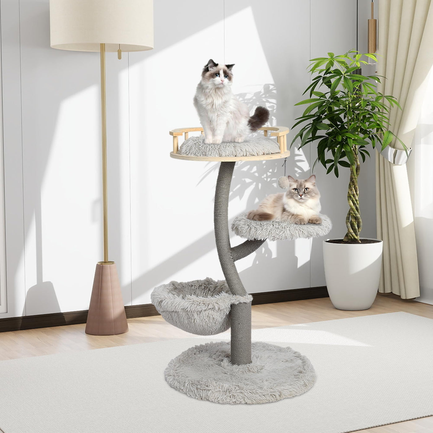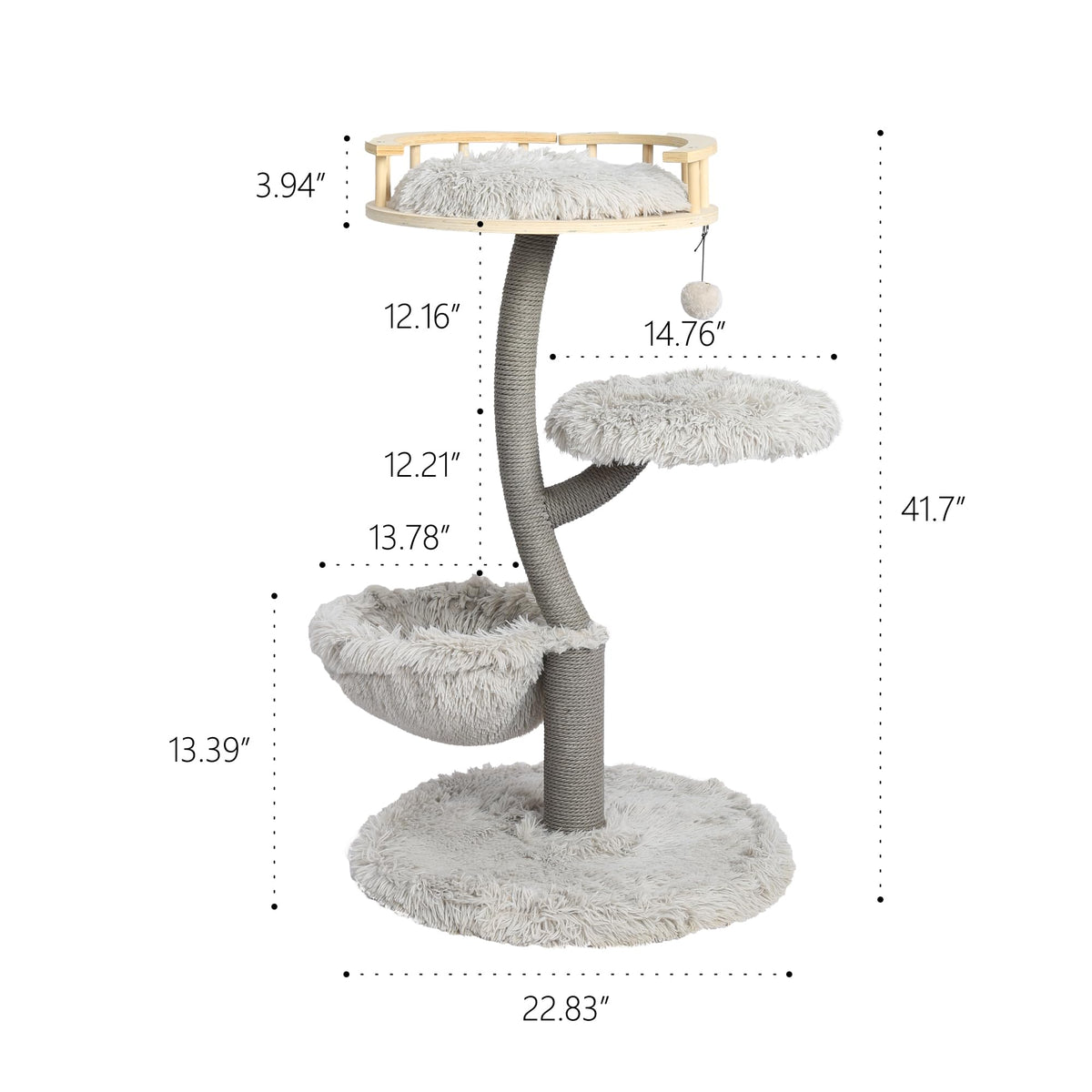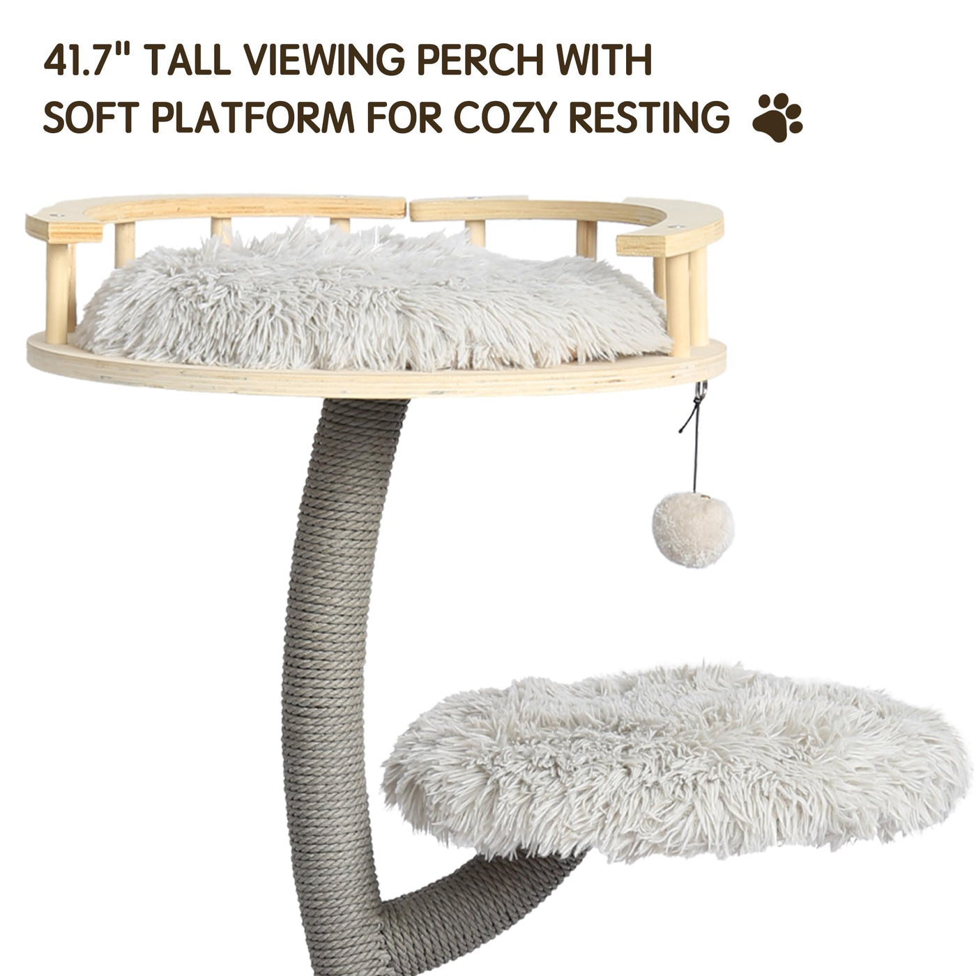 Kamaboko Modern Cat Tree With Scratching Post For Large Cats, 41.7 Cat Tree Tower With Luxury Cat Condo, Cat Tower With Soft P