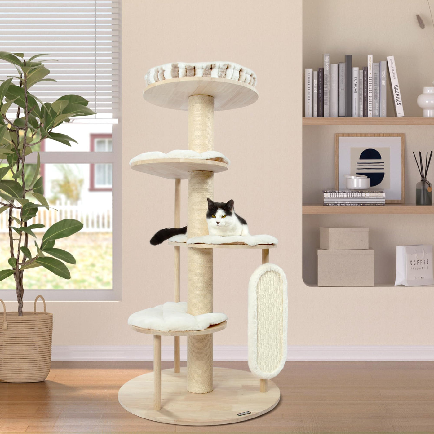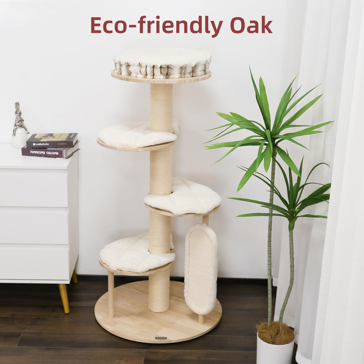 Kamaboko Tall Modern Cat Tree, 53'' Cat Tower, Cat Tree For Indoor Cats Large Adult, Multi-Level Cat Scratching Post With 3 Imit
