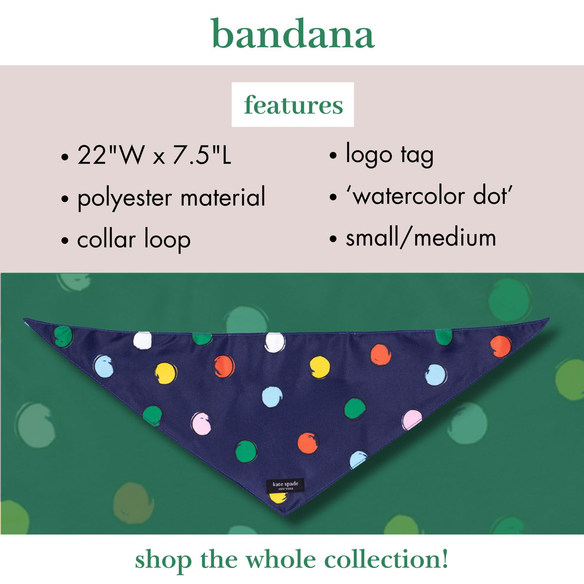 Give Your Pup A Stylish Twist With This Kate Spade New York Pet Bandana, Designed For Small To Medium Dogs. Featuring The Fun Watercolor Dots Pattern, It Adds A Pop Of Personality To Any Outing. The Bandana Measures 7.25X21X0.125 (18.4X53.3X0.3 Cm) And Easily Slips Onto Your Dogs Collar With The Convenient Loop On The Back. Whether It'S For A Walk In The Park Or A Cute Photo Op, This Bandana Is Perfect For Everyday Adventures!
