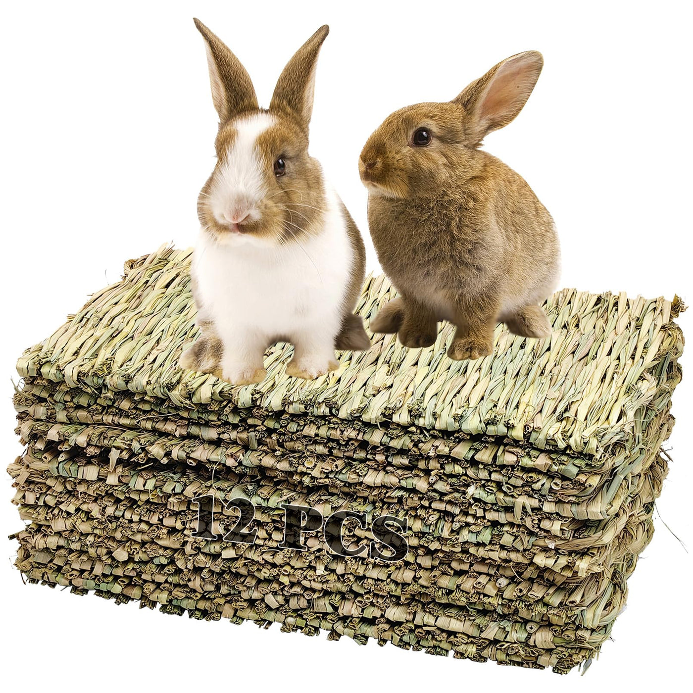 Kathson 12 Pcs Rabbit Large Grass Mat Natural Grass Woven Mat Rabbits Chew Toys Grass Bedding Nest For Small Animal Bunny Rabbit