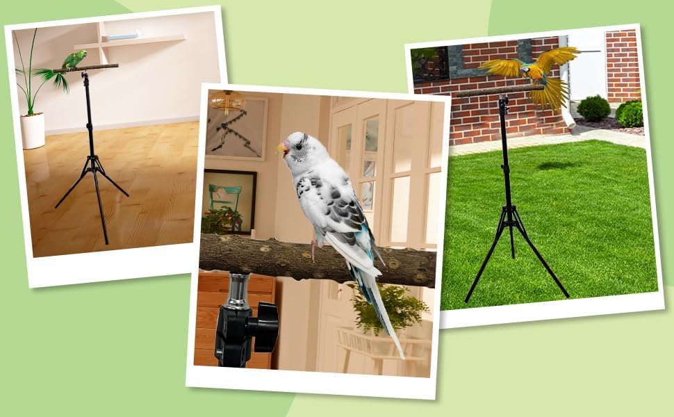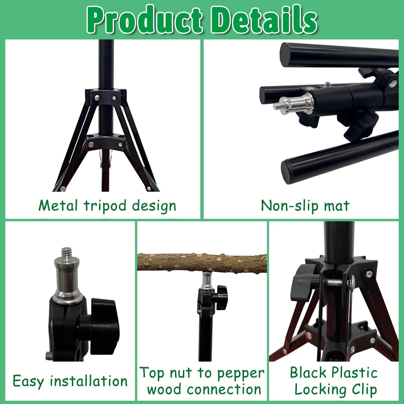Bird Training Stand Height adjustable with three height modes to choose from Tripod can be folded for storage, does not occupy space Pepper wood has its own special odor, ventilation, but also has the ornamental properties Can be used both indoors and outdoors, outdoors can train the birds flying skills Designed for parrots, African gray parrots, lovebirds and other small and medium-sized birds. Reasons to Choose Pepperwood Bird Stands 1.When birds dont want to stay in the birds, or you want to play with the birds to feed them, the perch stand is a good choice, and secondly, it also provides an environment for the birds to imitate the nature. 2. The material of the bird standing frame is pepper wood, which is relatively hard, not easy to deform, strong and durable. The surface of the pepper wood has uneven bumps, which increases the friction when the bird grasps it, and it can also sharpen the beak and grind the nails. 3.Multi-functional design, able to be used both indoor and outdoor. Birds can stand, rest, play, relieve boredom and train their flying skills. 4. Tripod is easy to carry, easy to install, height adjustable.