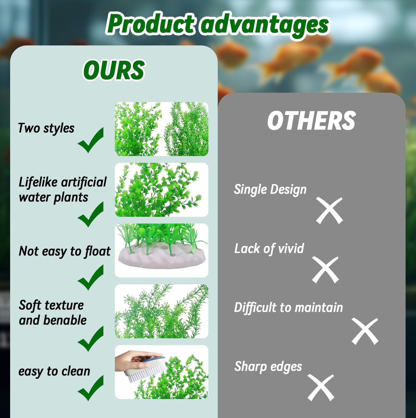 Our aquarium plants plastic large decorations will not fade or pollute the water, which can provide a natural living environment for your fish and add vitality to your fish. Tip: It is recommended to wash and soak in warm water before use in the aquarium. Please note that the size of the product meets your needs before purchasing, thank you for your support. Two different forms of aquarium artificial plants to meet your needs. Lifelike aquatic artificial plants let you feel the feeling of flowing water plants. Lifelike aquarium plant decorations for any large fish tank. Let your fish experience the natural underwater world and make your aquarium landscape more vivid. Specifications: Color:As Shown Materials:Plastic Size:21.7 Inches Package Includes: 2 x Pcs Aquarium Artificial Plants(different shape) Notes: 1. Please allow 0-1 inch error for manual measurement, thanks for understanding. 2. Due to the differences in the monitors of different devices, the color of the picture display may be different from the real object. Please refer to the real object.