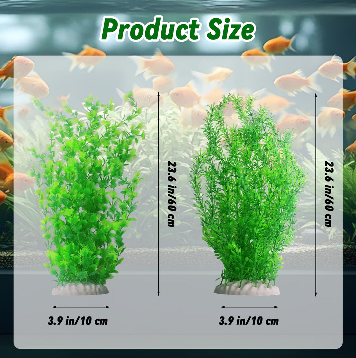 kathson 2PCS Extra Large Artificial Aquarium Plants,23 Inches Tall Fish Tank Decorations Plant Plastic Seaweed Decor Bendable Un