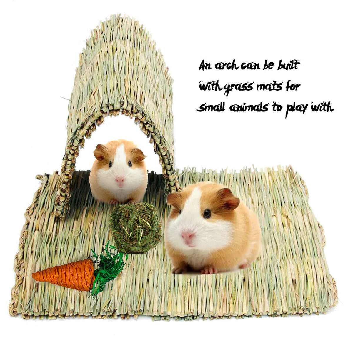 Kathson 6 Pcs Rabbit Large Grass Mat Natural Grass Woven Mat Rabbits Chew Toys Grass Bedding Nest For Small Animal Bunny Rabbit