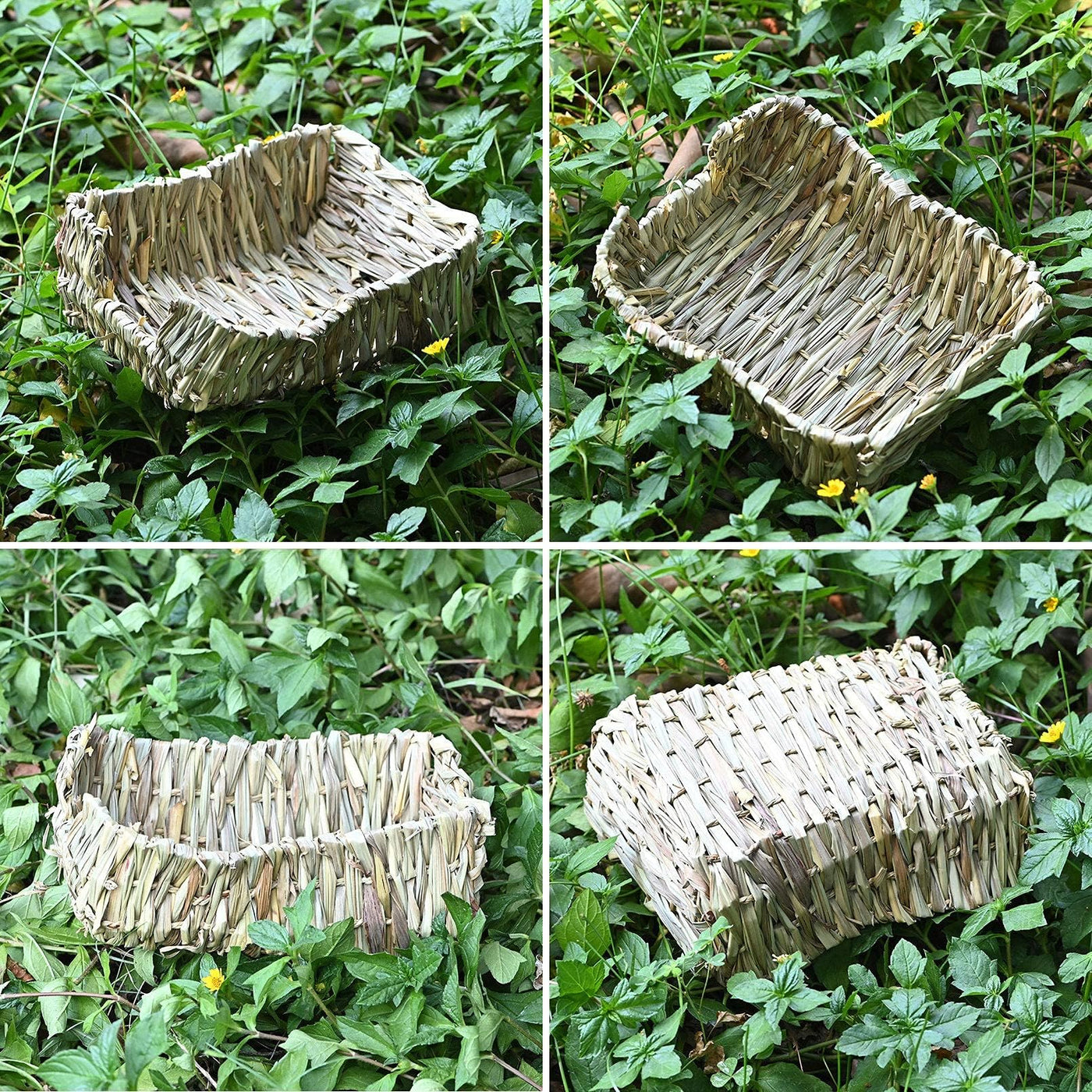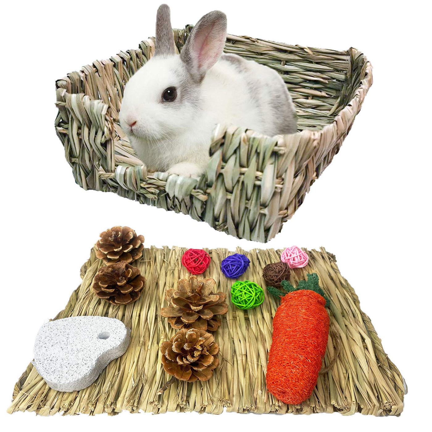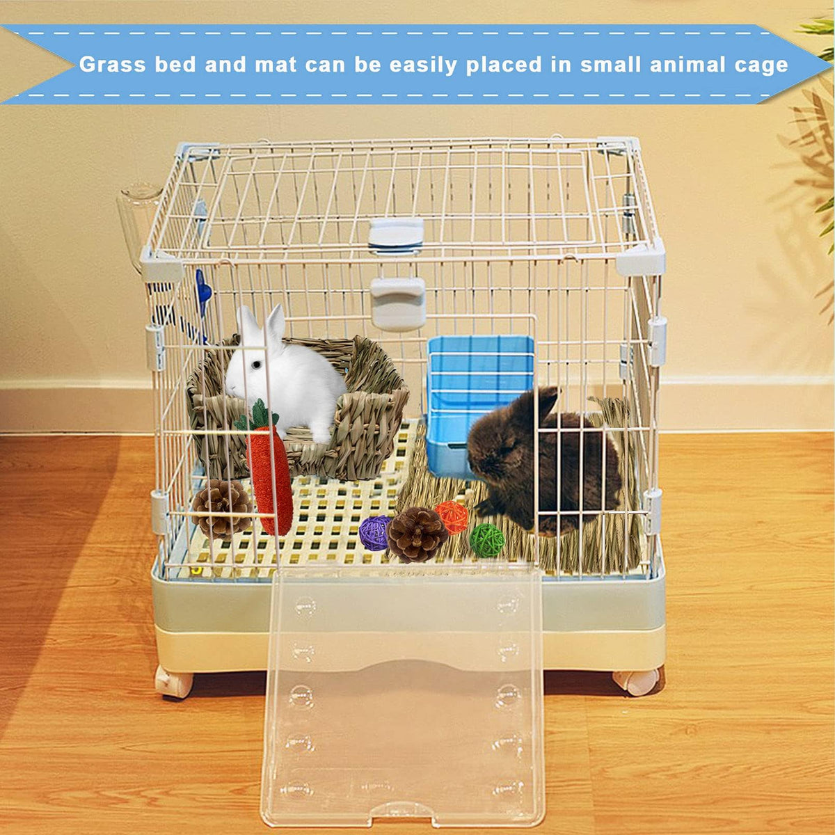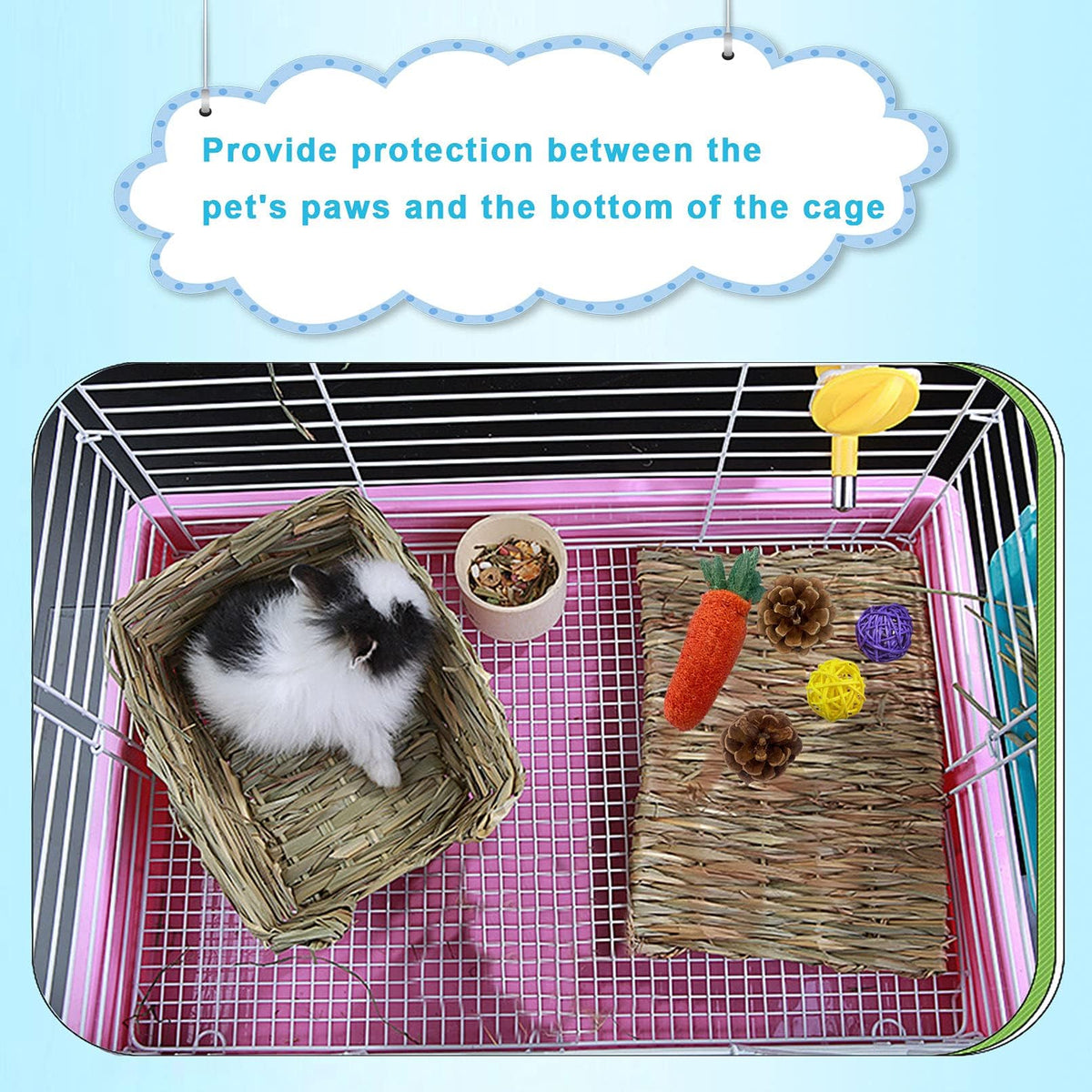 Kathson Bunny Grass Bed Portable Grass Bed Mat Hand-Made With Natural Straw Lightweight Paws Protection Bedding Nest Small Animals Chew Toys For Rabbit Guinea Pig Hamster Gerbil Chinchilla Mice