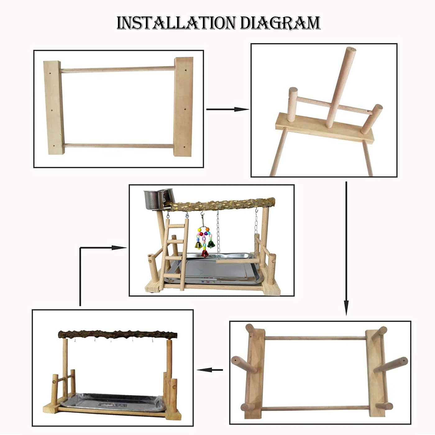 FEATURES: 1. The parrot playstand includes perch, ladder and swing to give your bird plenty of opportunities to get exercise. 2. Our bird play stand is totally handmade. The wood bar doesn’t paint poisonous pigment or anything else, just keep natural and original. 3. Bird toy can provides stimulation for your bird mentally and physically. And also offers many places for additional exercise opportunities. 4. Well constructed, easy to assemble, it is unstable or 'wobbles' well,you can get a small screwdriver and tighten it, it is tightened and doesn't move.