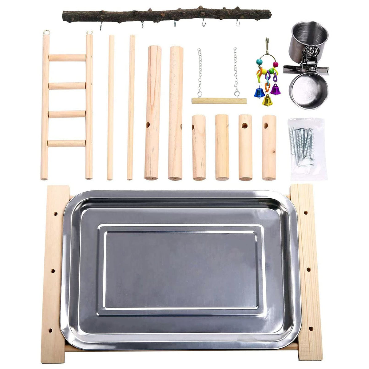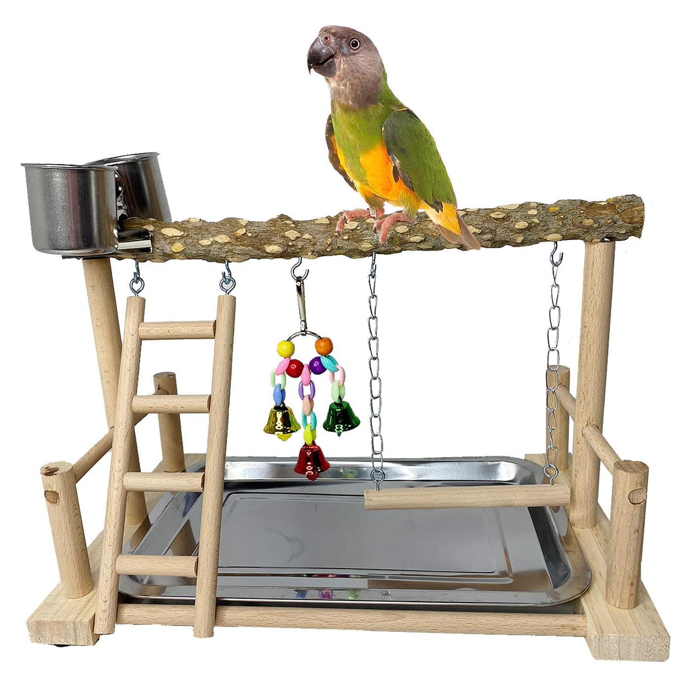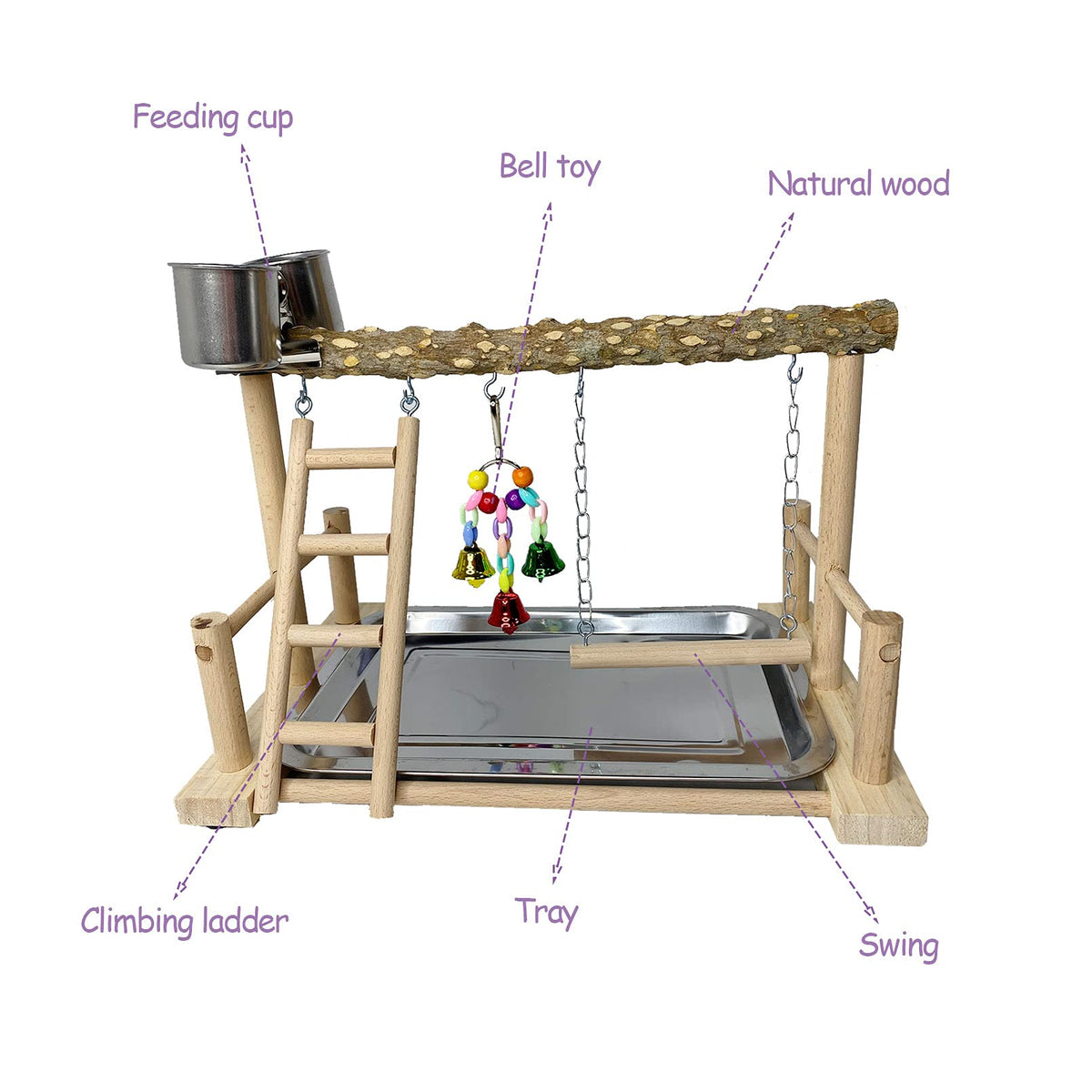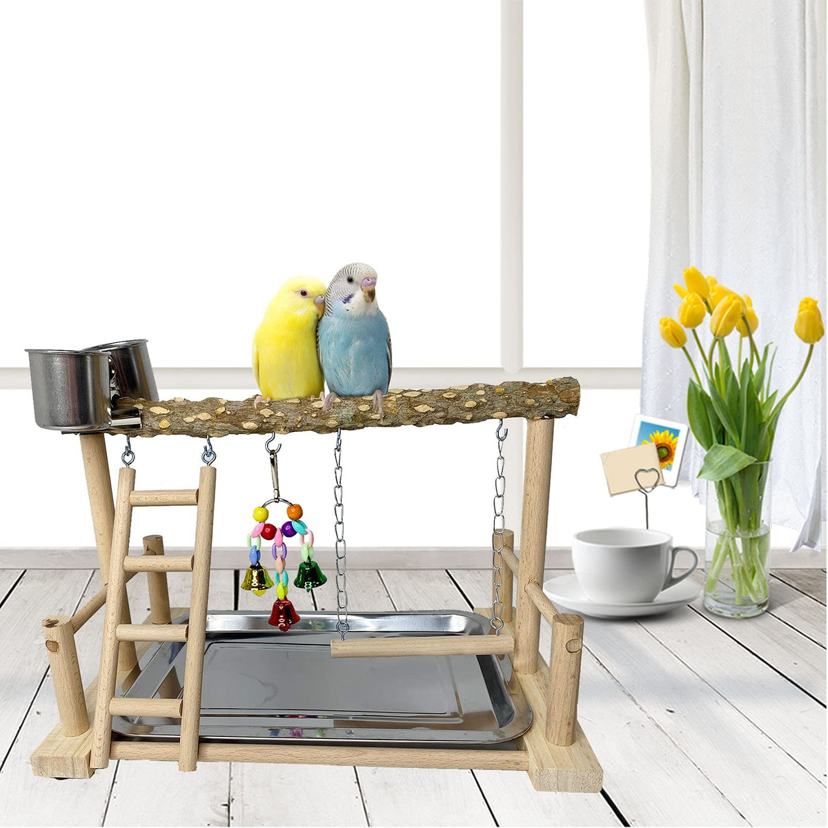 Kathson Parrots Playground Bird Perch Wood Playstand Stand With Ladder Swing Feeder Cups Chew Toy For Parakeet Conure Cockatiel Budgie Lovebird Finch Small Birds