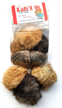 Kats'N Us Real Rabbit Fur Pom Pom Cat Toy - Jumbo Size For Endless Feline Fun And Entertainment - 10 Pack