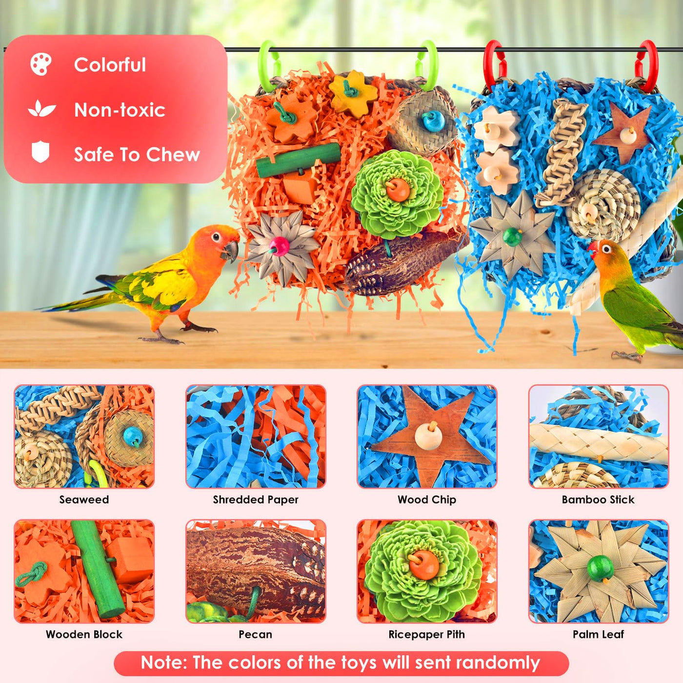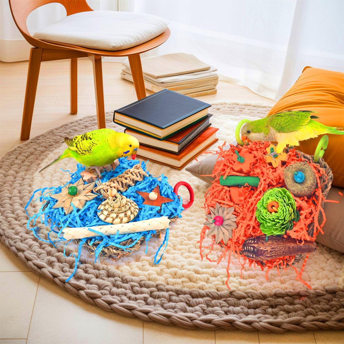 KATUMO Bird Toys, 2 Pack Bird Grass Mat Foraging Wall Toys Parrot Shredder Toys for Parakeet, Cockatiel, Conure, Lovebird, Budgi