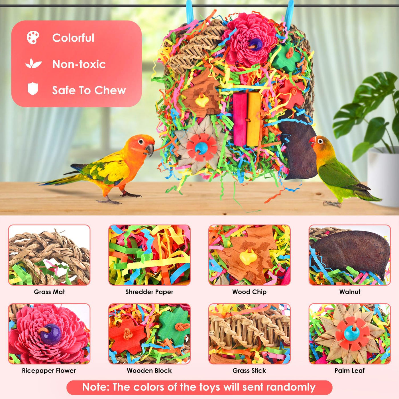 Katumo Bird Toys, Parakeet Toys Bird Grass Mat Parrot Shredder Toys Lovebird Forage Toys For Cockatiel Conure Lovebird Parakeet