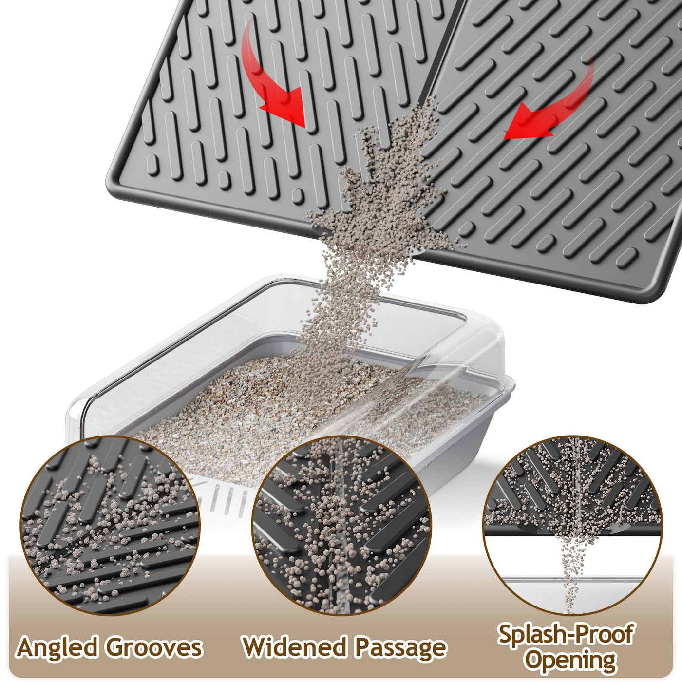 Kaxionage Cat Litter Mat With Grooves & Raised Edge,Urineproof/Waterproof,Litter Scattering Control,Easy To Clean (24 * 17In-Bla