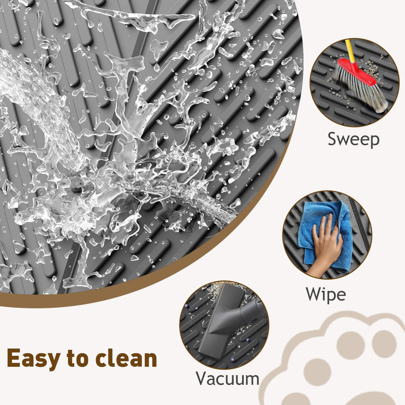 Cat Litter Mat Material? Made Of Lightweight, Durable And Environmentally Friendly Eva Foam Rubber, This Litter Mat Is Odorless, Soft And Comfortable To Protect Your Cat'S Claws. Waterproof? Waterproof/Urine Proof- Raised Edges Prevent Urine Or Kitty Litter From Spilling Onto The Floor, Preventing Urine From Penetrating The Floor And Easing The Cleaning Burden. How Do I Clean It? Lift Up The Mat And Pour The Litter Back Into The Litter Box. Wash The Mat With Water/Use A Vacuum Cleaner/Wipe With A Damp Towel/Remove With A Broom To Remove Any Remaining Litter And Stains Are There Any Creases? The Cat Litter Mat Is Designed To Be Folded Without Creases, So It Can Be Opened And Laid Flat For Use. If You Have Any Questions, Please Feel Free To Contact Us, We Are Happy To Help You Solve The Problem!