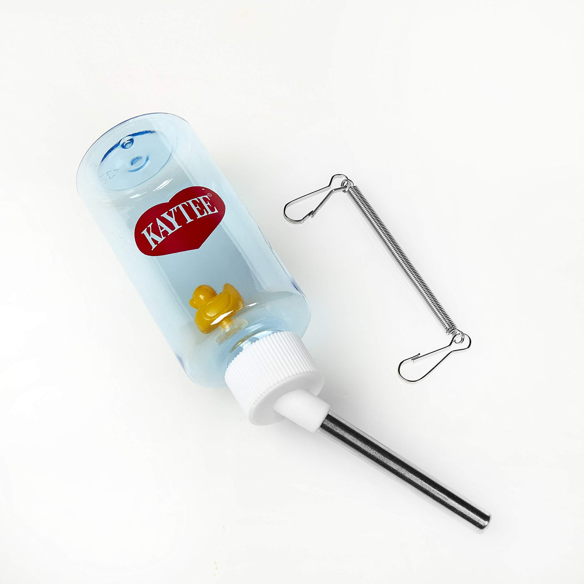 The clear choice water bottle. Heavy duty spring attachment hanger secures bottle to any small animal wire home. Drip resistant sipper tube. Comes with a floating duck to remind owner to refill the bottle.