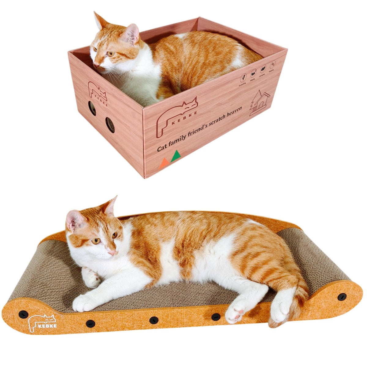 KEBKE Cat Scratcher Bed 27 Inch Cat Couch Scratcher &16 Inch Cat Scratch Box with Refillable Scratch Pad Cat Scratchers for Indo