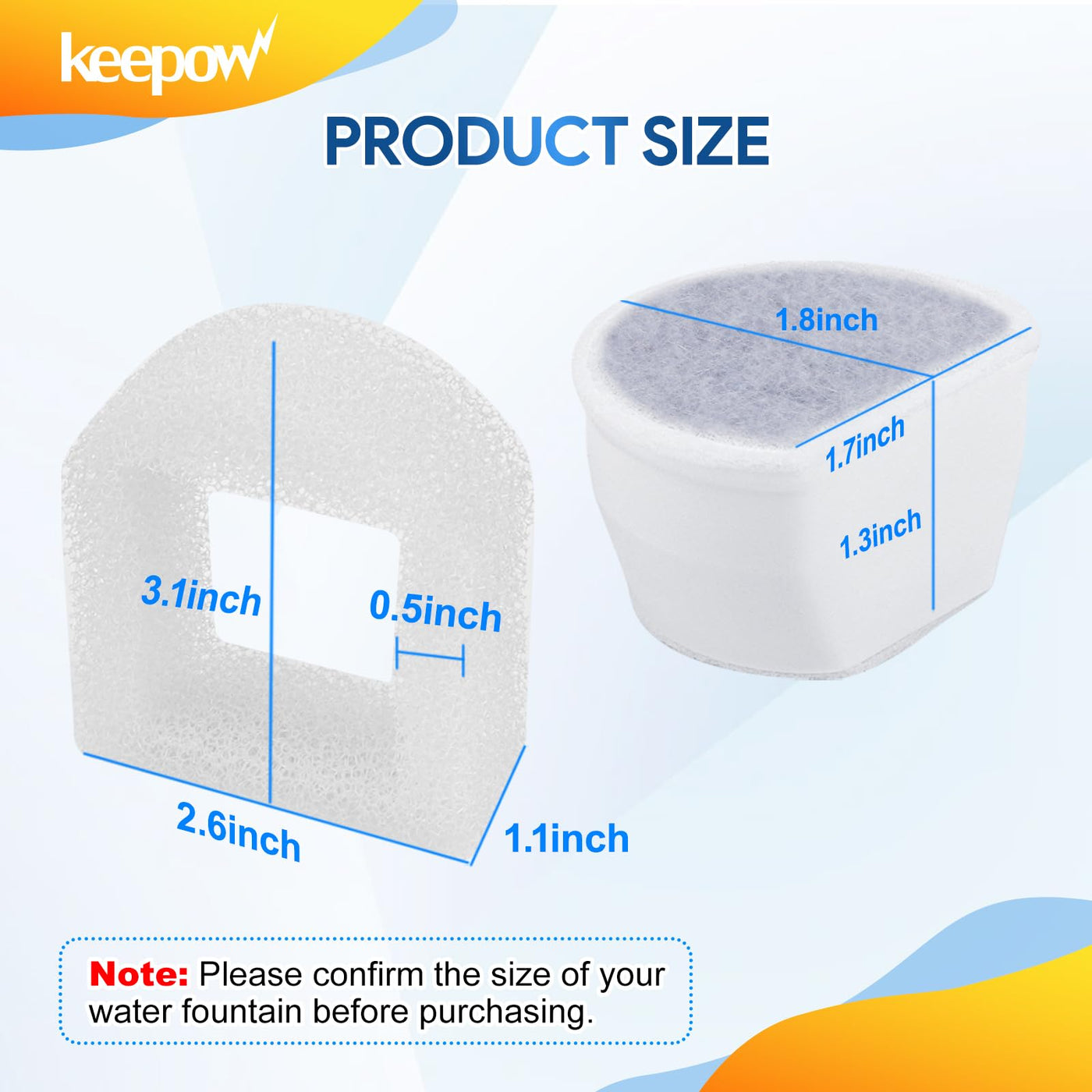 Keepow Cat Water Fountain Filter For Petsafe Drinkwell Fountain, 12 Pack Foam Pre-Filter & Carbon Filter For Drinkwell 1 1/2 2 G