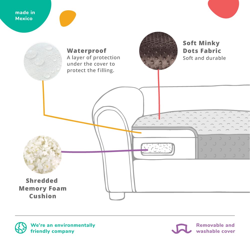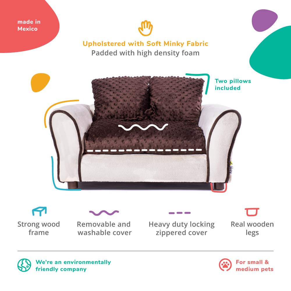 Give Your Pet The Gift Of Luxury And Comfort With The Moots Westerhill Dog Sofa Bed. Designed In California And Made In Tijuana, Mexico, This Premium Couch For Dog Is Thoughtfully Crafted To Provide Long-Lasting Comfort, Durability, And Style. Its Minky Upholstery Offers A Sophisticated Look While Ensuring Easy Maintenance. This Pet Sofa Has A Removable, Machine Washable Cushion Cover So Your Dog'S Favorite Spot Stays Fresh And Cozy. Weve Incorporated A Heavy-Duty Zipper With Locking Sliders To Keep Playful Dogs From Tampering With The Cushion Cover. Beneath The Upholstery Lies A Waterproof Layer To Protect The Filling, Ensuring The Pet Sofa Bed Couch Remains In Great Shape Even During Accidents Or Spills. Inside, Moots' Supreme Fill Formula Combines Poly-Fiber And Shredded Memory Foam, Providing Your Dog With The Perfect Mix Of Support And Softness. The Solid Wood Frame And Legs Not Only Enhance The Dog Bed Sofa Durability But Also Add A Touch Of Elegance To Your Home. Whether Its Naptime Or Playtime, Your Furry Friend Will Love Lounging On This Beautifully Crafted Fancy Dog Bed, And Youll Love How It Looks In Your Living Space.