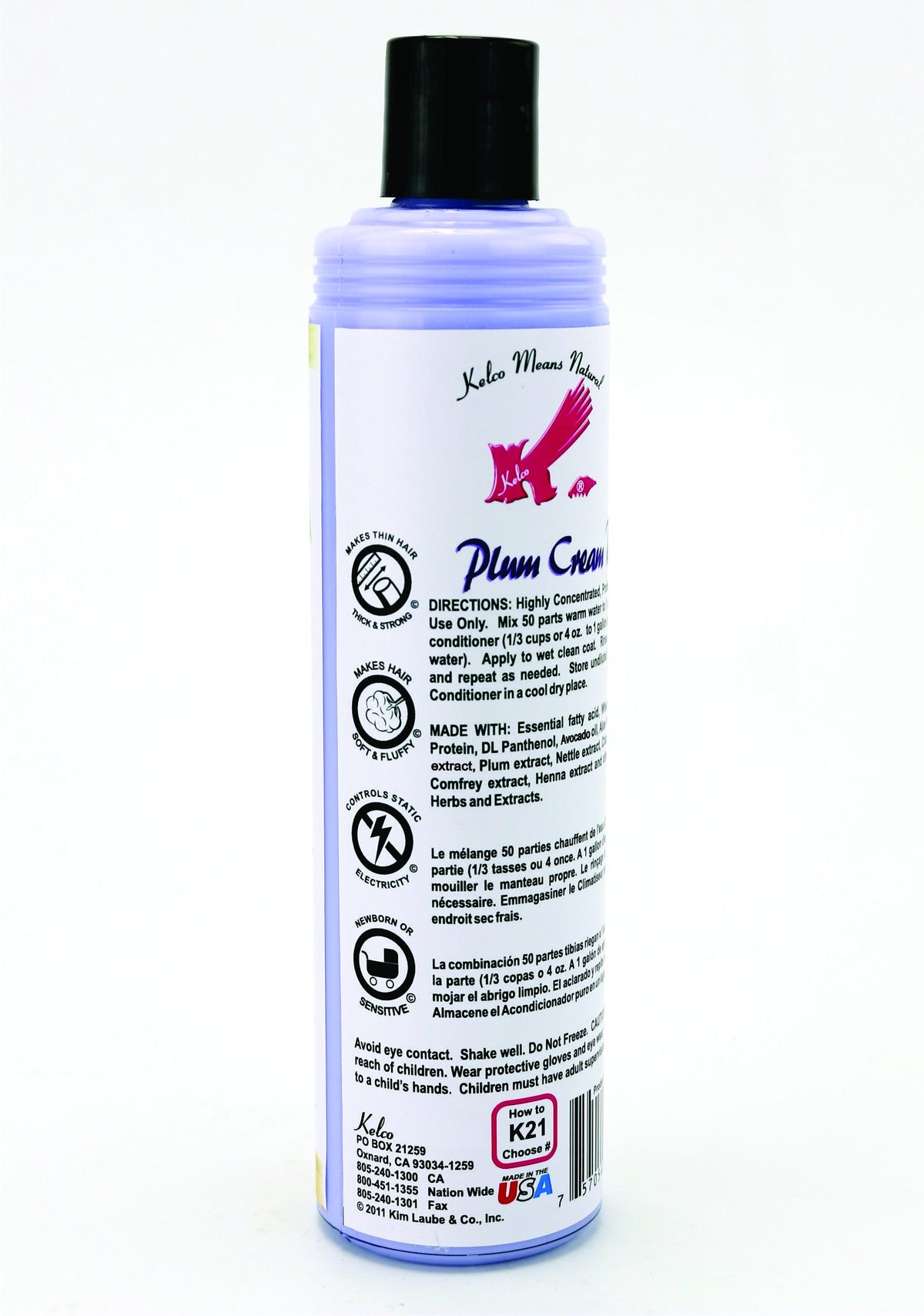 Q: Does this product help with static control in fur?A: Yes, Kelco Plum Rinse Cream is specifically designed to remove and control static electricity, ensuring that your pet's coat remains smooth and manageable.