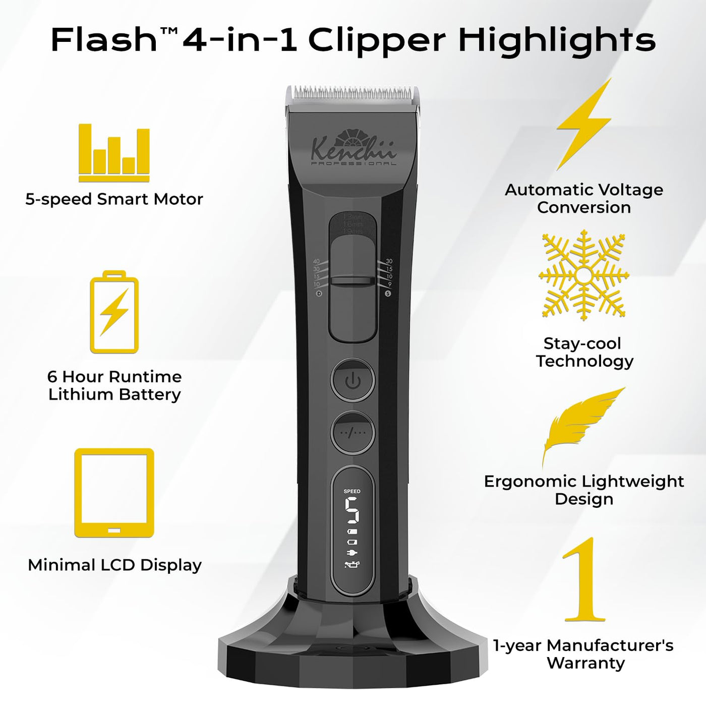 Kenchii Flash Clipper - 5-Speed Cordless Dog Clippers For Grooming With Rechargeable Battery And Smart Sensors For Streamlined Cuts - Professional Animal And Dog Grooming Supplies