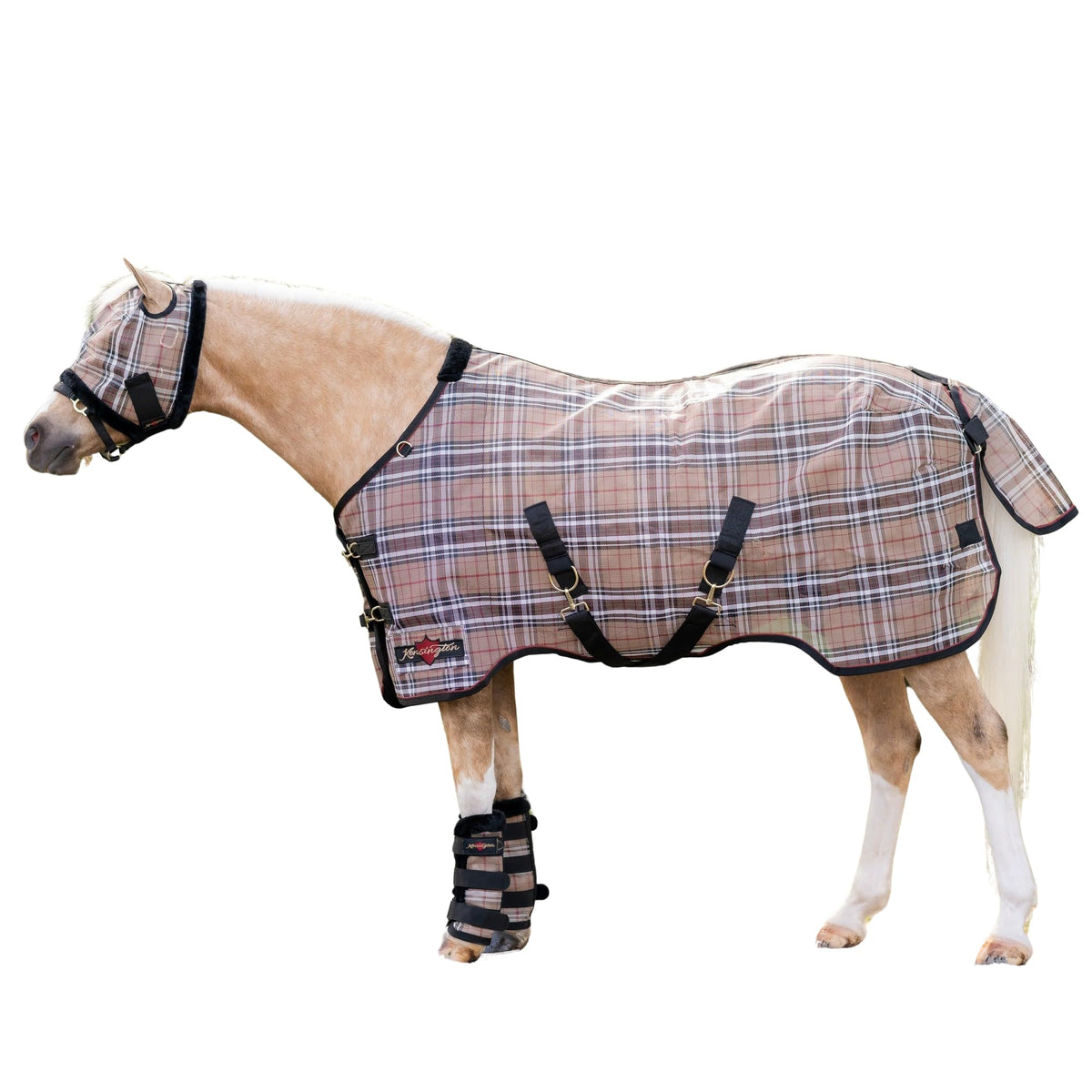 Kensingtons Pony Protective Sheet Is Constructed Of Textilene Mesh, And Is Cut To Fit A Wide Range Of Pony Body Confirmations. Textilene Is A 1000 X 2000 Denier Mesh That Has Many Benefits Including: 73% Uv Protection, 78% Air Permeability, Fly And Insect Protection, Fire Resistance, And Does Not Absorb Heat From The Sun Or Your Pony. The Weave Keeps Dirt And Debris Off Your Ponys Coat And Offers Gentle Grooming As Your Pony Moves That Brings Out Their Natural Oils, And Helps Release Loose Hair Which Reduces Grooming Time, Which Is Especially Helpful During Shedding Seasons. The Uv Protection Keeps Your Ponys Coat Safe From Bleaching Out, And Prevents Sunburns. The Air Permeable And Non-Heat Absorbing Material Keeps Your Pony Cool And Comfortable In The Warm Months. In The Event Of A Fire This Material Resists Burning, And Will Stick To Itself, Not Your Pony. This Sheet Features Quick Clip Front Closures That Are Adjustable With Buckles, A Padded Wither, Leg Arches That Provide Additional Adjustability For The Detachable 2 Criss Cross Belly Straps With Snaps And D-Rings, Removable, Adjustable Leg Straps With Snaps And D-Rings, And Removable Tail Cover.
