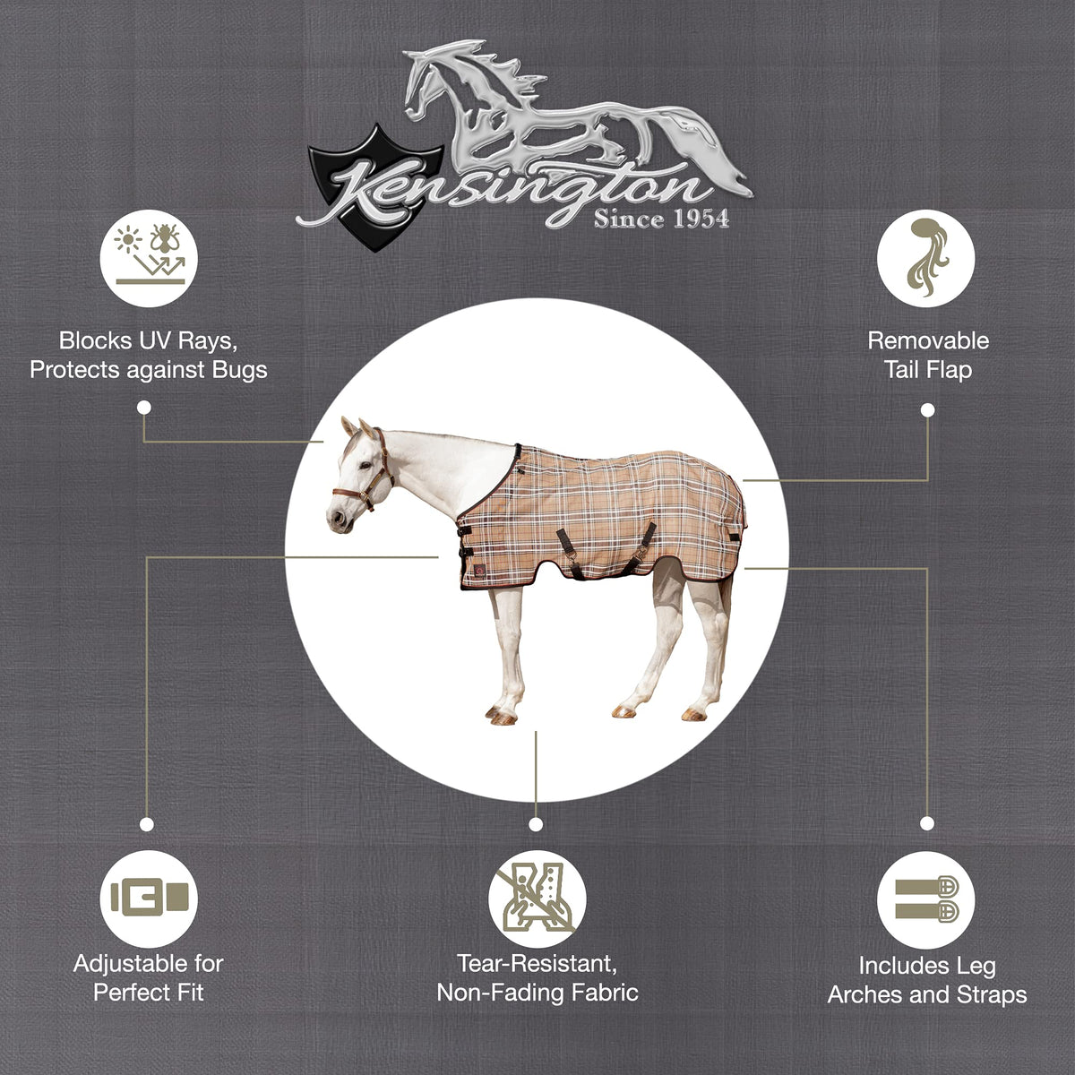 Kensingtons Pony Protective Sheet Is Constructed Of Textilene Mesh, And Is Cut To Fit A Wide Range Of Pony Body Confirmations. Textilene Is A 1000 X 2000 Denier Mesh That Has Many Benefits Including: 73% Uv Protection, 78% Air Permeability, Fly And Insect Protection, Fire Resistance, And Does Not Absorb Heat From The Sun Or Your Pony. The Weave Keeps Dirt And Debris Off Your Ponys Coat And Offers Gentle Grooming As Your Pony Moves That Brings Out Their Natural Oils, And Helps Release Loose Hair Which Reduces Grooming Time, Which Is Especially Helpful During Shedding Seasons. The Uv Protection Keeps Your Ponys Coat Safe From Bleaching Out, And Prevents Sunburns. The Air Permeable And Non-Heat Absorbing Material Keeps Your Pony Cool And Comfortable In The Warm Months. In The Event Of A Fire This Material Resists Burning, And Will Stick To Itself, Not Your Pony. This Sheet Features Quick Clip Front Closures That Are Adjustable With Buckles, A Padded Wither, Leg Arches That Provide Additional Adjustability For The Detachable 2 Criss Cross Belly Straps With Snaps And D-Rings, Removable, Adjustable Leg Straps With Snaps And D-Rings, And Removable Tail Cover.