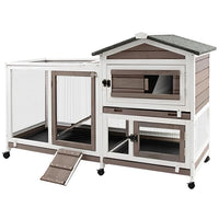 Ketive Rabbit Hutch Indoor Outdoor Two Story Bunny Hutch With Wheels Guinea Pig Cage With Removable No Leaking Tray Wooden Pet H