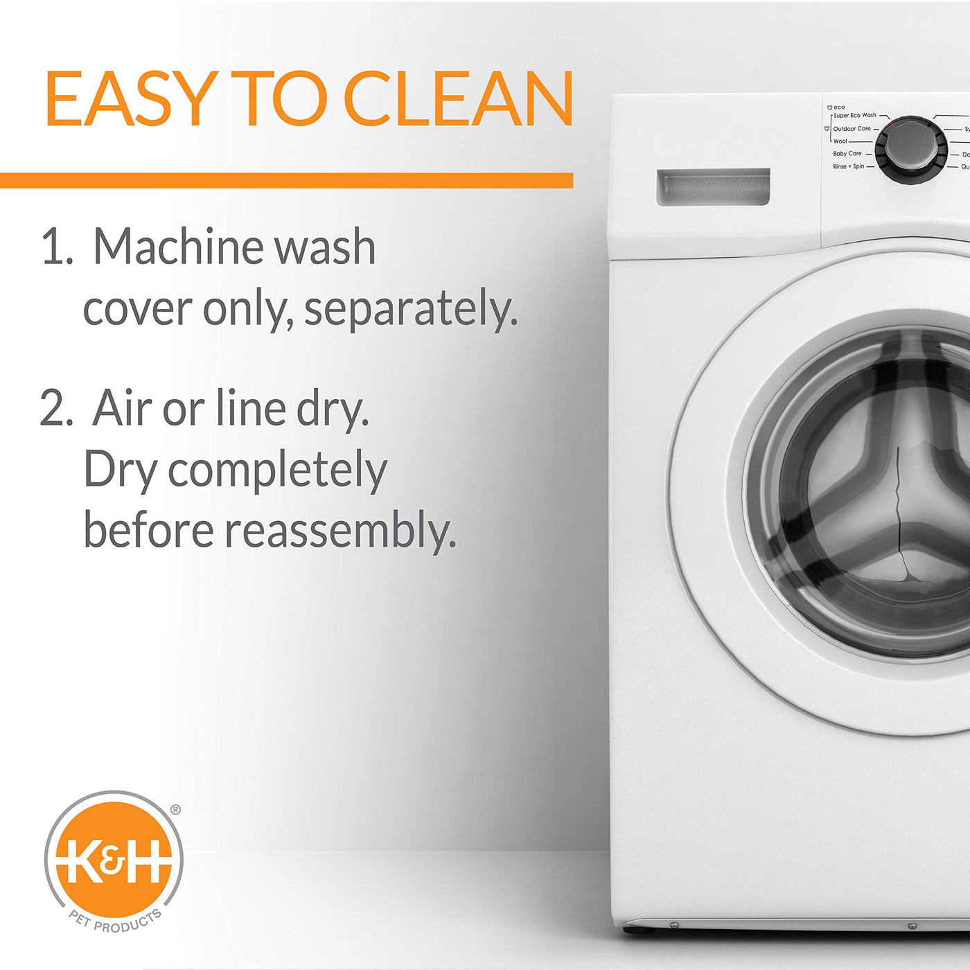 Q: How do I clean the K&H Replacement Cover?A: You can clean it by removing the cover and placing it in the washing machine. Follow standard washing instructions for polyester fabric to ensure longevity.