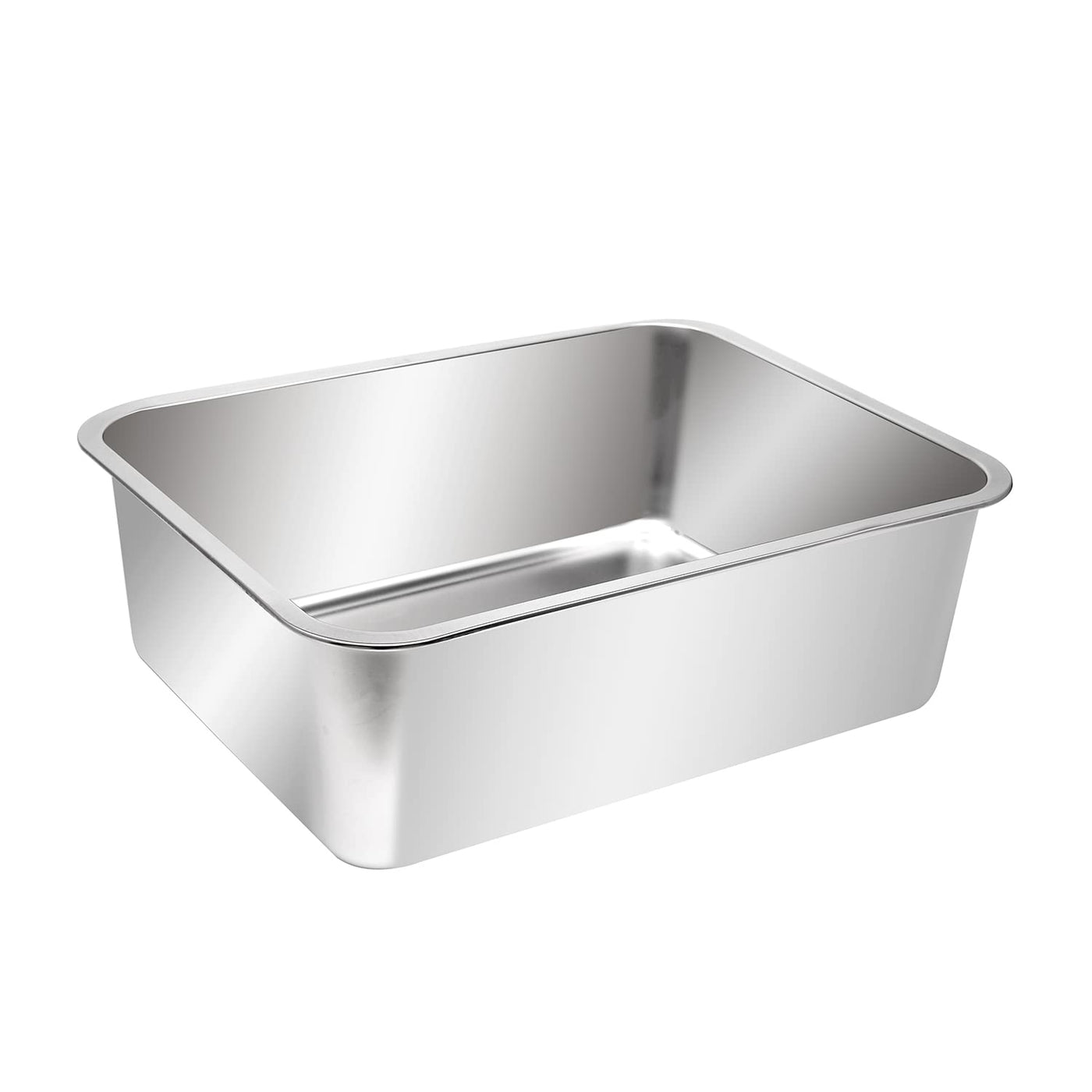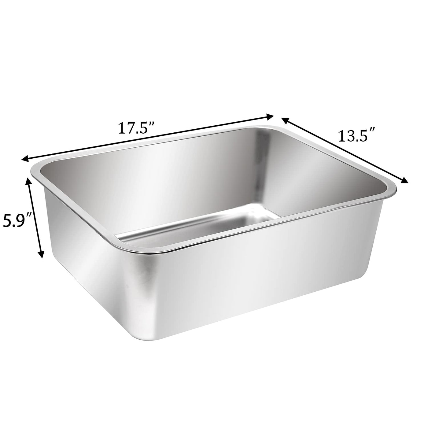 The cat litter box is made of stainless steel which is rust resistant and super durable Measures 175 x 135 x 59 inches not too small or too large perfect size for most cats to use Unlike plastic ones this stainless steel litter box doesnt cause or retain odors The stainless steel litter box is very easy to keep clean and nothing sticks makes cleaning the cat litter box so much easier Featuring rounded edges the stainless steel litter box is comfortable to hold no sharp edges