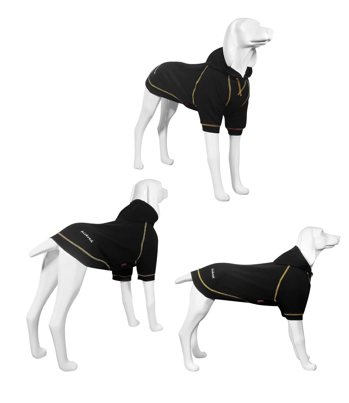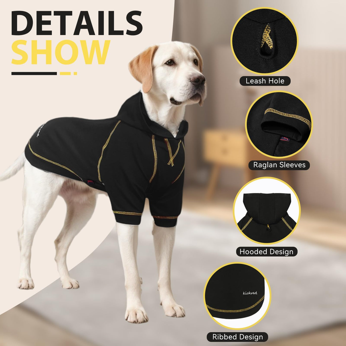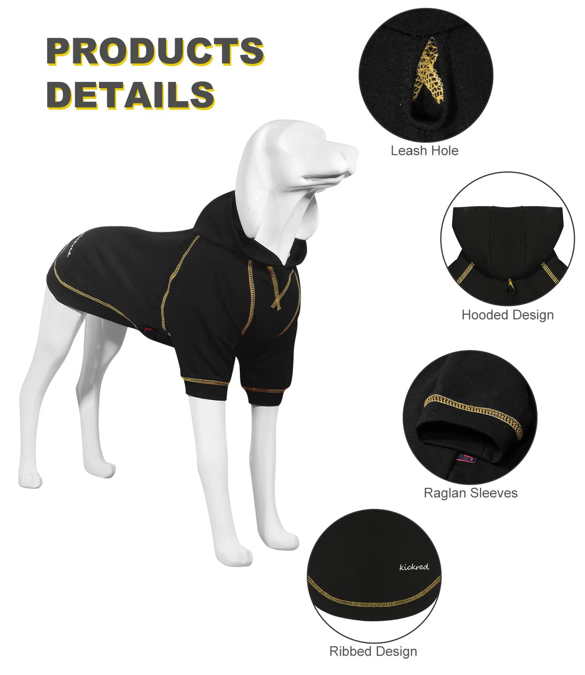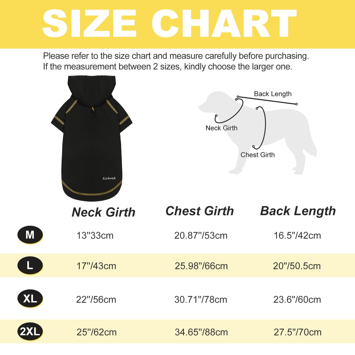 Blends function with fashion via a solid color cotton fabric and casual sports hoodie that brings breathable, lightweight comfort and a hood to keep their noggin warm Stitched leash portal lets you effortlessly clip on their leash to keep every journey you and your pup dive into safely on track Design features Dual Reinforced stitching at every seam for longevity and durability with a Pull-over design for easy on and off access IMPORTANT SIZING NOTE: Different sellers have different size charts standard. Your dog usually wears size 'M' doesn't mean all size 'M' will fit him/her. If your dog is between sizes, please size up. If there is a difference between the neck and the chest, follow the chest size. If your dog is underage, please take the growth factor into consideration when choosing the size. Leave room for at least two fingers to make the dog feel comfortable and not choke. SIZE CHART: SIZE XS: Neck Girth 9'/ 23cm; Chest Girth 15'/ 37cm; Back Length 10'/ 25cm SIZE S: Neck Girth 10'/ 25cm; Chest Girth 16'/ 40cm; Back Length 12'/ 30cm SIZE M: Neck Girth 13'/ 33cm; Chest Girth 21'/ 53cm; Back Length 16'/ 40cm SIZE L: Neck Girth 17'/ 43cm; Chest Girth 28'/ 70cm; Back Length 20'/ 50cm SIZE XL: Neck Girth 22'/ 56cm; Chest Girth 33'/ 83cm; Back Length 24'/ 60cm SIZE 2XL: Neck Girth 25'/ 62cm; Chest Girth 36'/ 92cm; Back Length 30'/ 75cm