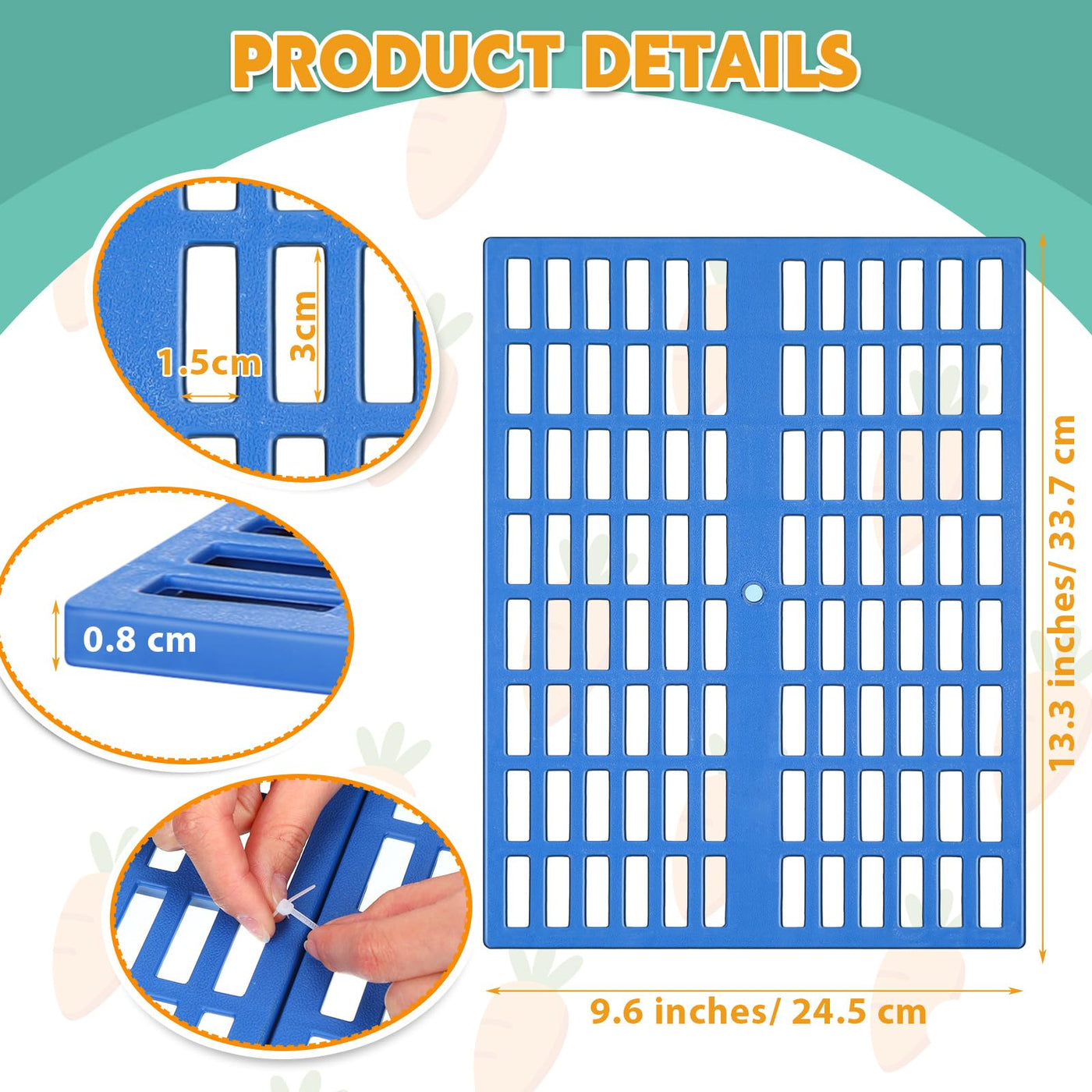 Features: This Rabbit Mat Can Prevent Your Pet From Being Scratched By Mesh Wire Or Suffering From Foot Dermatitis Or Hair Loss, Also Can Prevent Your Lovely Pet'S Feet From Being Infected By Excrement. These Rabbit Mats For Cages Are Very Easy To Clean, Just Clean Them Under The Tap Or With A Damp Paper Towel, Which Can Save You A Lot Of Time And Energy. Specifications: Material: Plastic Color: Blue Size: 13.4 X 9.8 X 0.3 Inches/ 34 X 25 X 0.8 Cm Package Includes: 12 X Plastic Rabbit Cage Mats Notes: Manual Measurement, Please Allow Slight Errors On Size. The Color May Exist A Slight Difference Due To Different Screen Displays. Before Purchase, Confirm Whether The Product Size Is Suitable For Your Pet, And Observe The Pet'S Reaction When Using. Please Remove The Product In Time If There Is Any Discomfort.