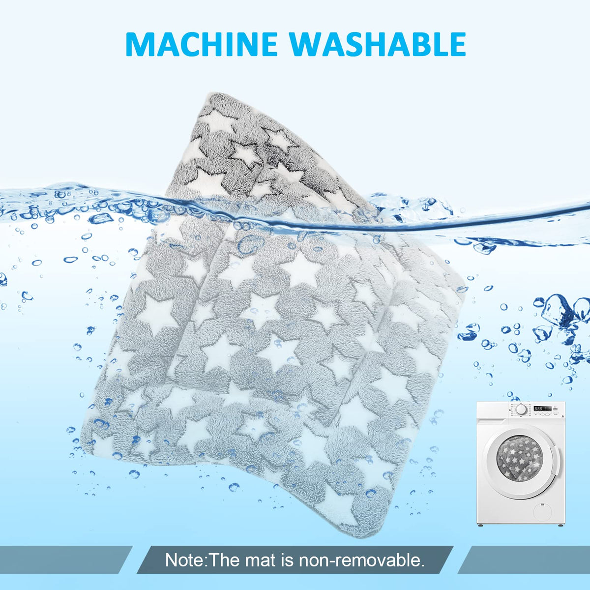 Soft and comfortable: The dog crate mat is made of premium materials with excellent craftsmanship The soft flannel and fleece surfaces provide a cosy environment for your pets to sleep100% polyester filler is good for the elderly and injuried pets Easy to care: This dog bed mat is machine washable and very durable It will retain its original shape after many cleanings However it is not suitable for dogs that chew excessively Reversible design:The personalized pet mat has two sides The cute star surface can play a decorative role making the monotonous dog crate more beautiful and lovely comfortable fleece surface can match up with the furniture easily and has good breathability Multi-scene use: This dog crate kennel pad is suitable for many occasions It not only can be placed in the 24inch dog crate floor sofa car and other places to provide rest for dogs but also can be used as a blanket Please note that this dog bed mat is not waterproof so please keep it away from water convenient and portable: This dog pad is not very thick(about 15inch) but it is very lightweight You can easily hold it with one hand to go anywhere you want to go Its a great choice for taking your pet out Size details: This stylish dog mat measures about 29x21x15 perfect for 30inch dog kennel and is suitable for pets up to 40 lbs such as corgi Bull Terrier caution: To protect the environment our dog bed mats are vacuum packed When you receive the package please lightly rub or tap the dog pad to restore the best fluffy stateThe dog bed mats are vacuum packed in a small box when you receive it open and leave it for more than 24 hours is more favorable to use