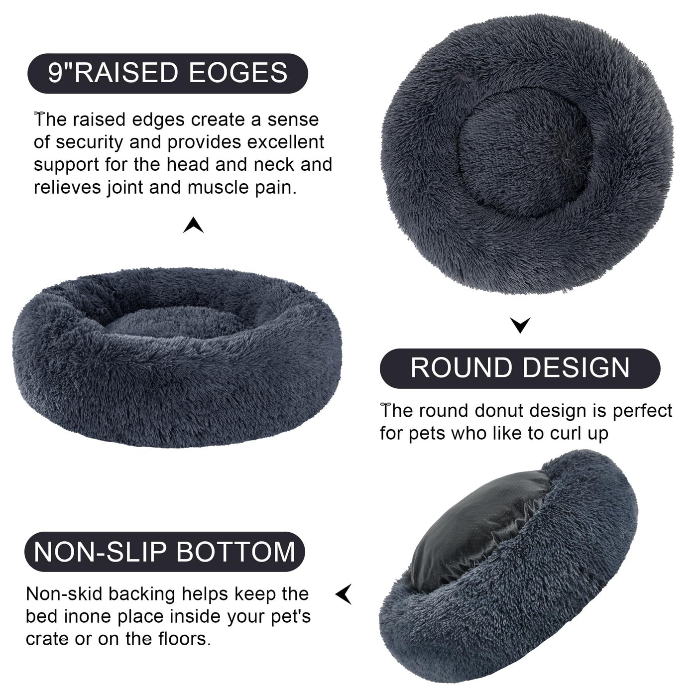 Dog Bed Calming Dog Beds For Small Medium Large Dogs - Round Donut Washable Dog Bed, Anti-Slip Faux Fur Fluffy Donut Cuddler Anxiety Cat Bed(36'' Dark Grey)