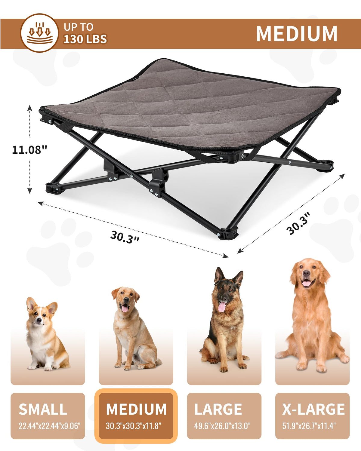Dimensions: When Unfolded, It Measures 30.31X30.31X11.81Ines, Providing A Spacious And Comfortable Resting Space For Your Dog. When Folded, The Dimensions Are 32.2X7.4X4.3Ines, Which Is Convenient For Storage And Takes Up Little Space. Weight: Weighing Only 3Kg(6.6Lbs), It Is Lightweight And Portable, Making It Easy To Use Both At Home And When Traveling. Bed Surface: Made Of 450G Textilene Material, It Is Cool, Breathable, Wear - Resistant, And Durable. It Can Be Easily Cleaned With A Damp Cloth And Will Not Harm Your Pet'S Paws. Cotton Pad: Consists Of Suede Fabric, 80G/M2 Sprayed Adhesive Cotton, And 600D Oxford Cloth Bottom. The Suede Fabric Is Soft And Comfortable, The Sprayed Adhesive Cotton Provides Good Warmth And Support, And The Oxford Cloth Bottom Is Tear - Resistant And Highly Durable. Bracket: Made Of Q195 Steel Pipe, The High - Strength Material Ensures The Stability Of The Bed. The Surface Of The Steel Pipe Is Sprayed With Plastic To Prevent Corrosion And Extend The Service Life. Outer Bag: Made Of 100% Polyester 210D Oxford Cloth With A Pu Coating, It Is Convenient For Storage And Carrying, Protecting The Dog Bed From Damage.