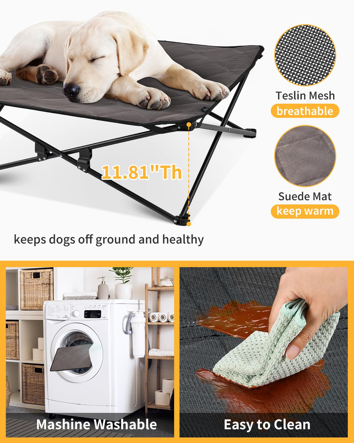 Kingcamp Elevated Dog Bed For Medium Dogs, Raised Outdoor Indoor Portable Cooling Cot Lifted Pet Hammock Off Ground With Washabl