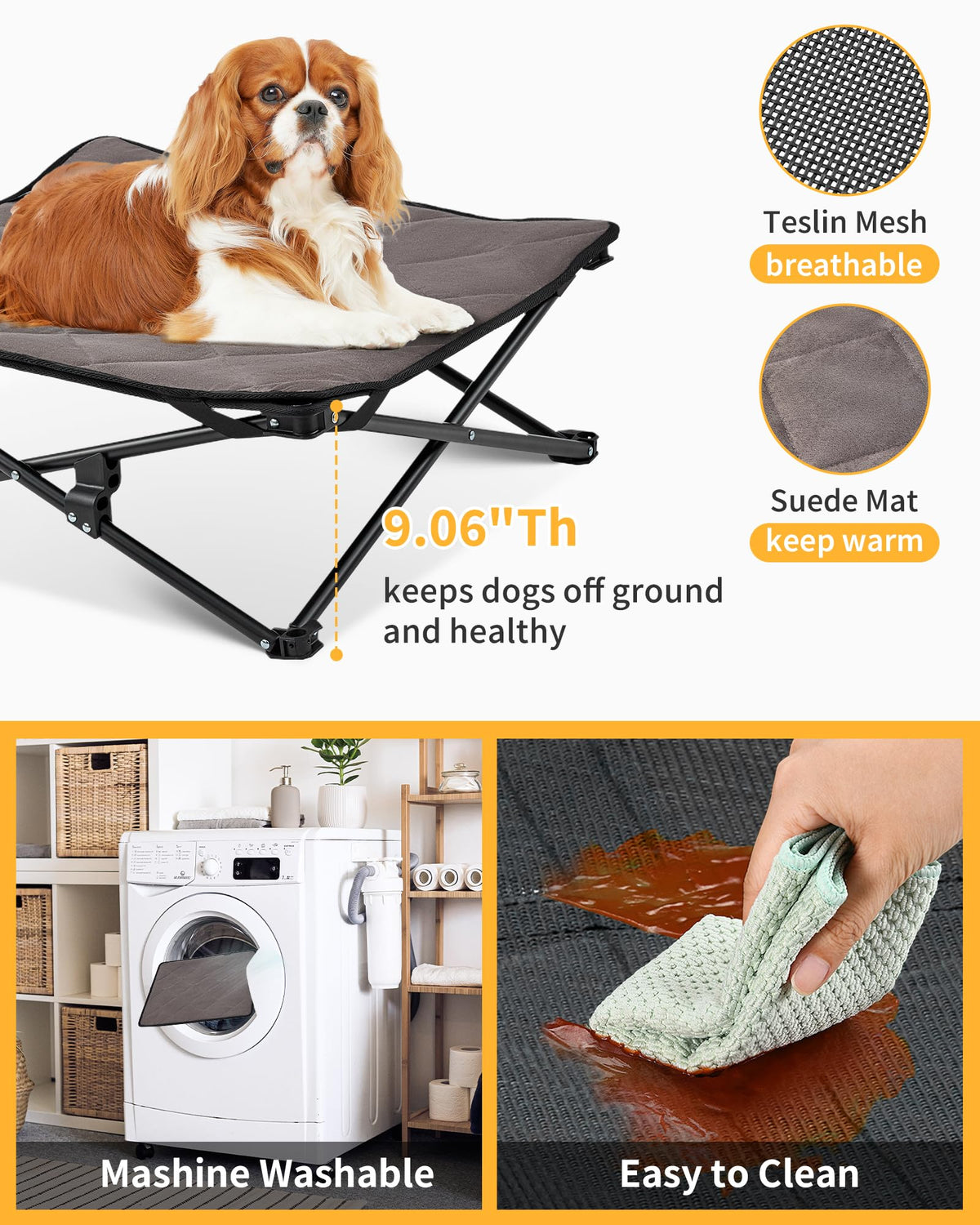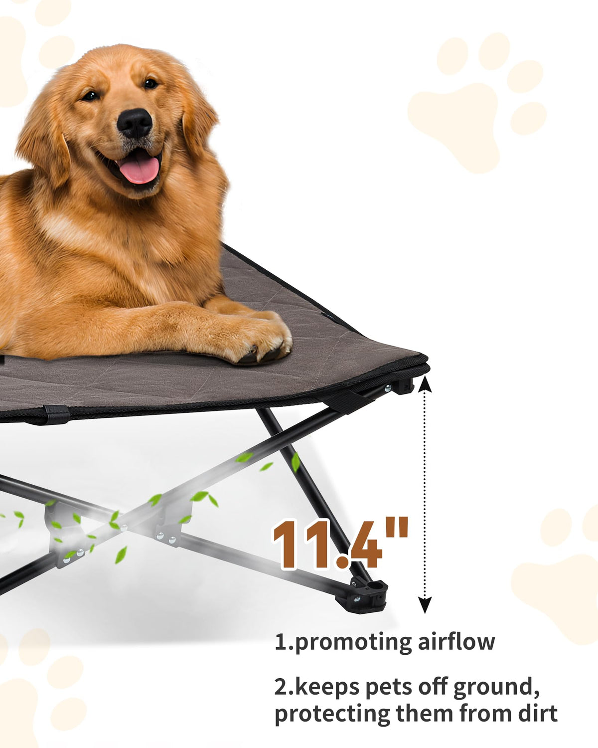 This Elevated Pet Bed Is Designed For Large Dogs, Offering Them The Ideal Resting Space. Featuring A Quick Setup Design, You Can Easily Pull To Open And Fold It Back For Easy Storage. The Lightweight Design Makes It Convenient To Carry, Making It Perfect For Travel, Camping, Or Everyday Use. The Elevated Design Ensures That Your Pet Stays Off The Ground, Keeping Them Away From Moisture, Dirt, And Uneven Surfaces, While Providing A Clean And Comfortable Environment. Made From High-Quality Faux Suede, Spray-Bonded Cotton, And Durable Oxford Fabric, This Bed Offers Both Comfort And Long-Lasting Durability, Easy To Clean After Every Use. With A High Weight Capacity, This Bed Is Suitable For Various Settings-Whether At Home, During Travel, Or On Outdoor Adventures.