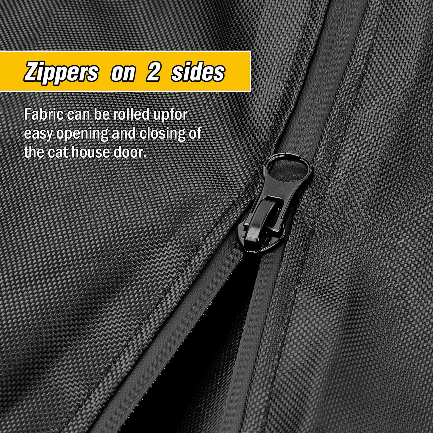 Product Specifications: Product Name: Outdoor Cat House Cover Color: Black Size: 63''L X 33''W X 70''H Material: 500D Oxford Fabric Product Features: 1. Outdoor Cat House Cover Features: Waterproof, Dustproof And Sunproof. 2. Suitable For Similar Size Cat House/Cat Cage/Cat Condo. 3. The Center Design Of The Cover Rolls Up The Fabric, Which Can Open The Door Easily. 4. The Drawstring At The Bottom Can Flexibly Adjust The Elasticity Of The Cover. 5. Easy To Clean: Just Wipe With A Damp Cloth Or Rinse With A Faucet. The Easiest Way To Protect Your Outdoor Cat House. Wear A Dust Cover For Your Outdoor Cat House To Prevent Dust Rain Sunshine From Causing Damage To Your Cat House.