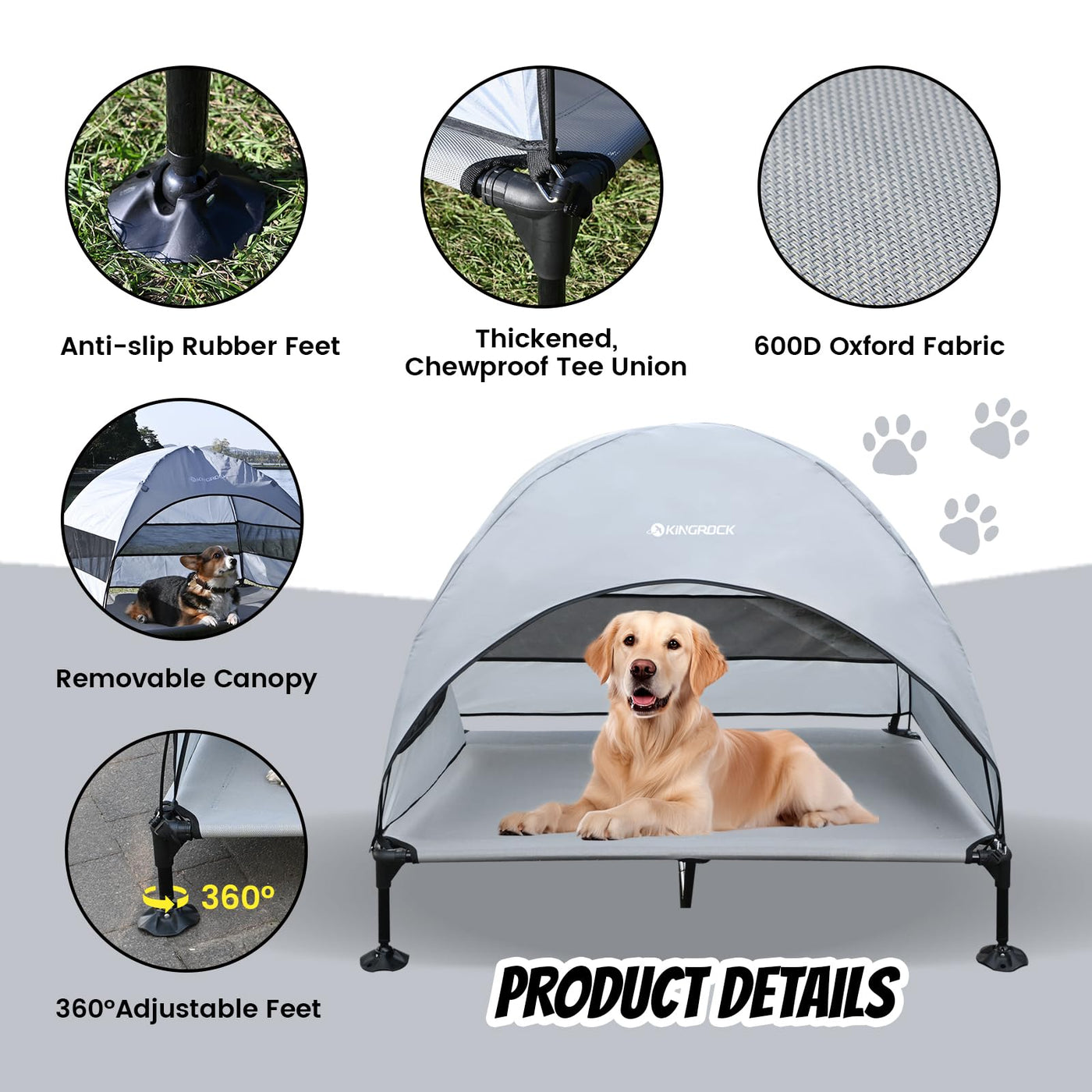 Kingrock Elevated Dog Bed Outdoor With Canopy, Portable Raised Dog Bed With Stable Anti-Slip Feet, Raised Dog Beds, Wider Shade Pet Bed Cot For Large Dogs Camping, Indoor & Outdoor Use