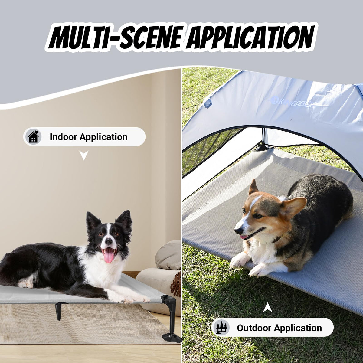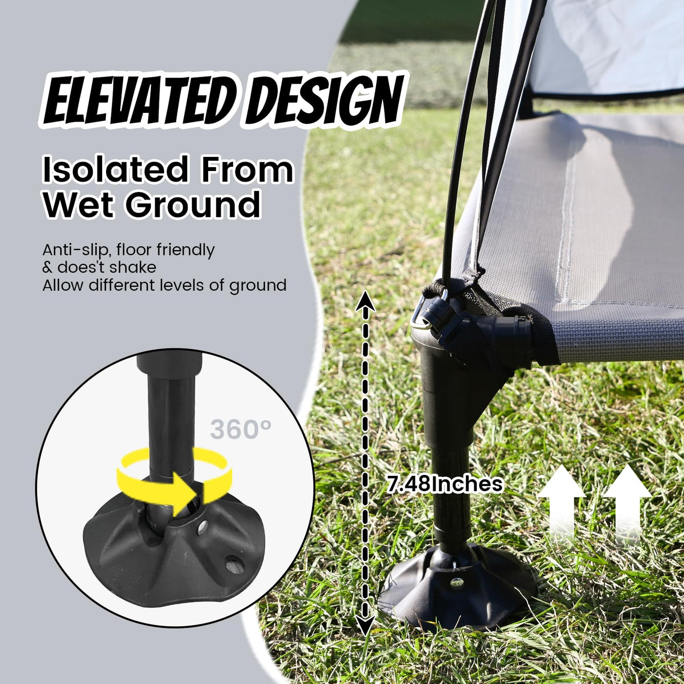 Kingrock Elevated Dog Bed Outdoor With Canopy, Portable Raised Dog Bed With Stable Anti-Slip Feet, Raised Pet Beds, Wider Shade