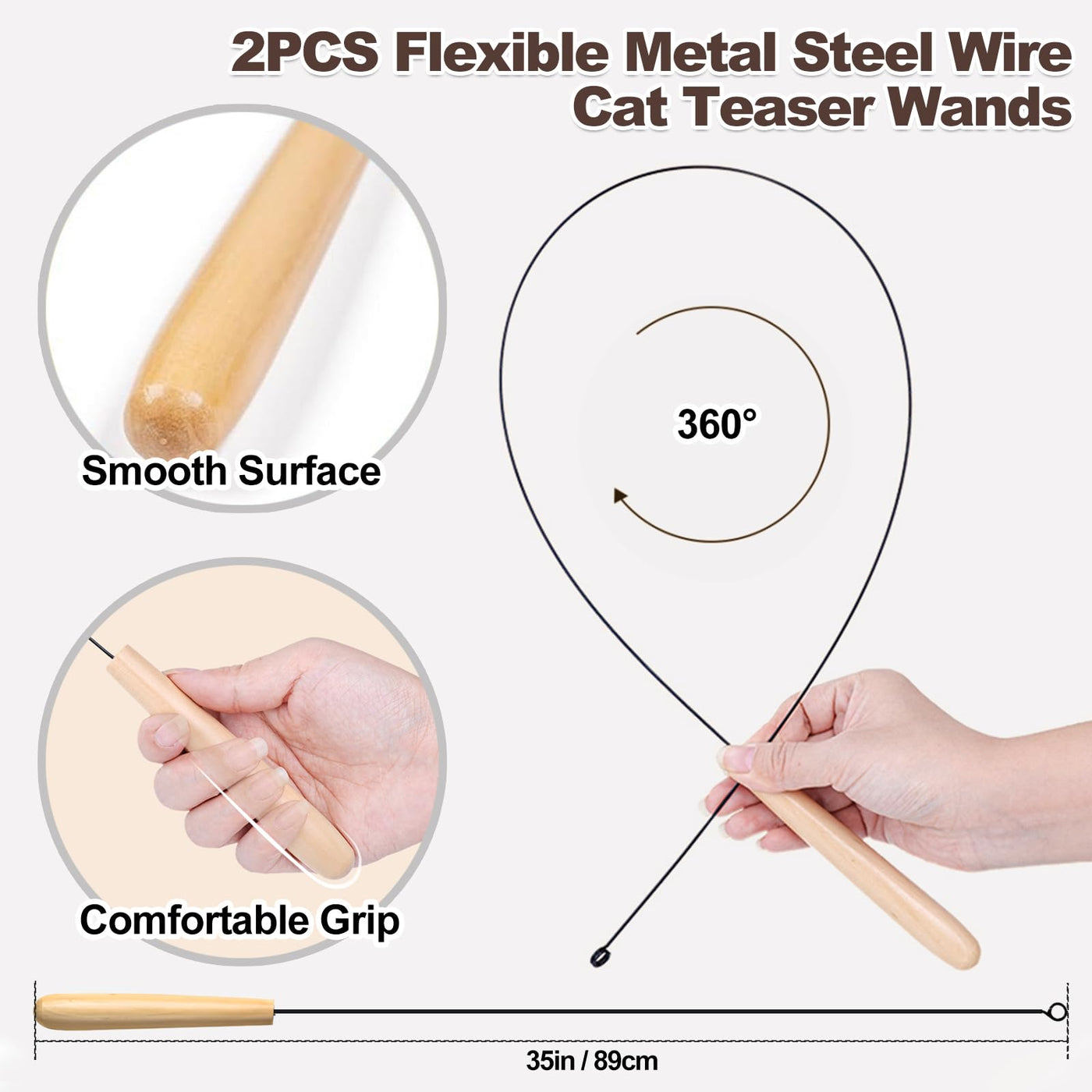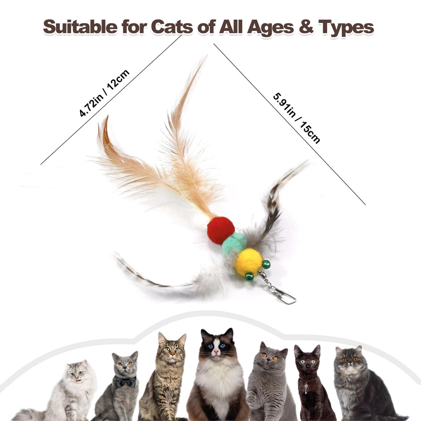 Kingtree Cat Teaser Wand Toys, 8 Pack Feather Wand Cat Toy Set With 6Pcs Insects Feather Refills & 2Pcs Flexible Steel Wire Teas