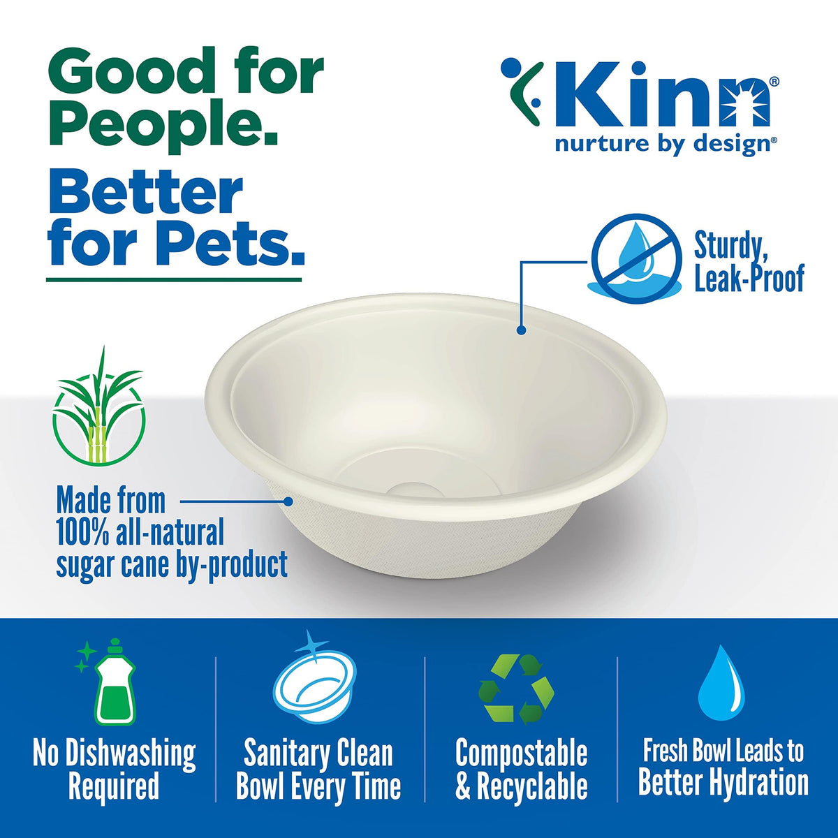 Kinn Kleanbowl Pet Bowl Stainless Steel Frame with Compostable Refills, 32 oz (Pack of 2) - Spill-Proof Stable Disposable Pet Bo