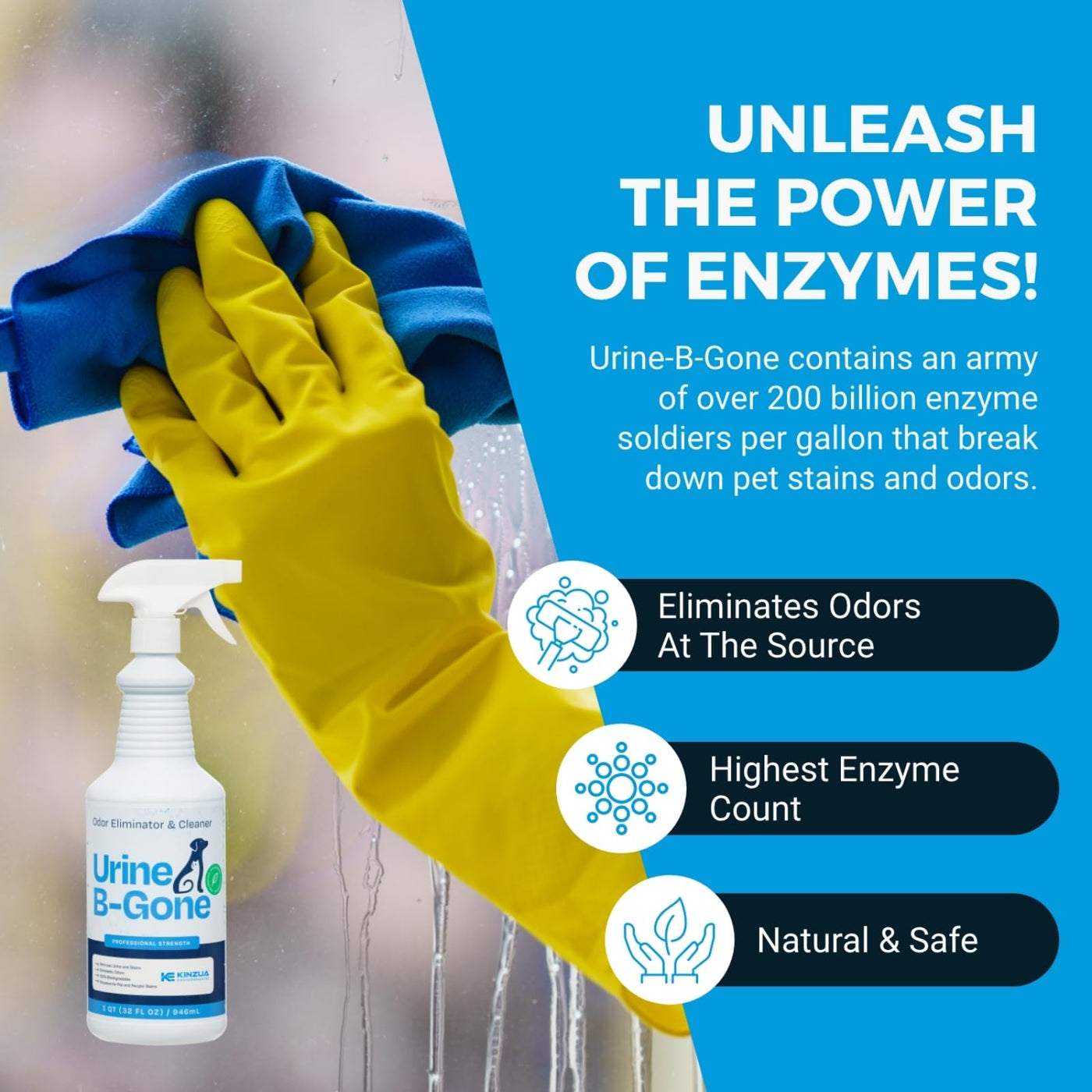 KINZUA ENVIRONMENTAL Urine B-Gone, 32oz Professional Enzyme Odor Eliminator & Pet Stain Remover for Cats & Dogs, Original Scent