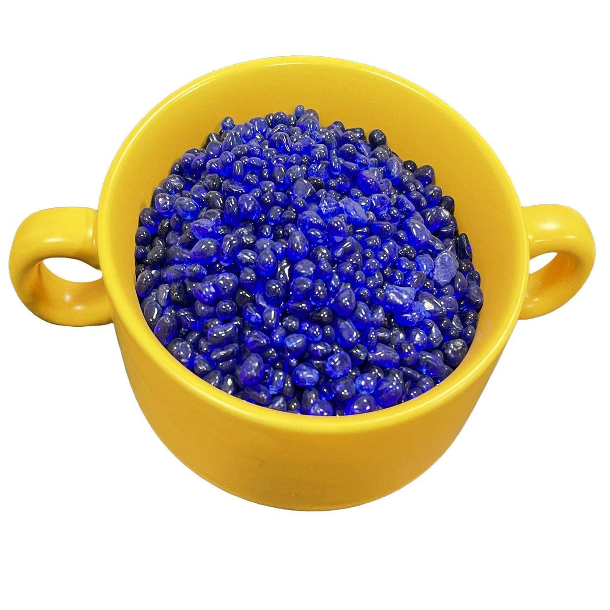 Kiseer Clear Aquarium Glass Stone Bulk 1 Lb Sea Glass Beads Gems Marbles Pebbles Gravel Rock For Aquarium, Fish Tank, Garden, Vase Fillers, Succulent Plants Decor (Blue)