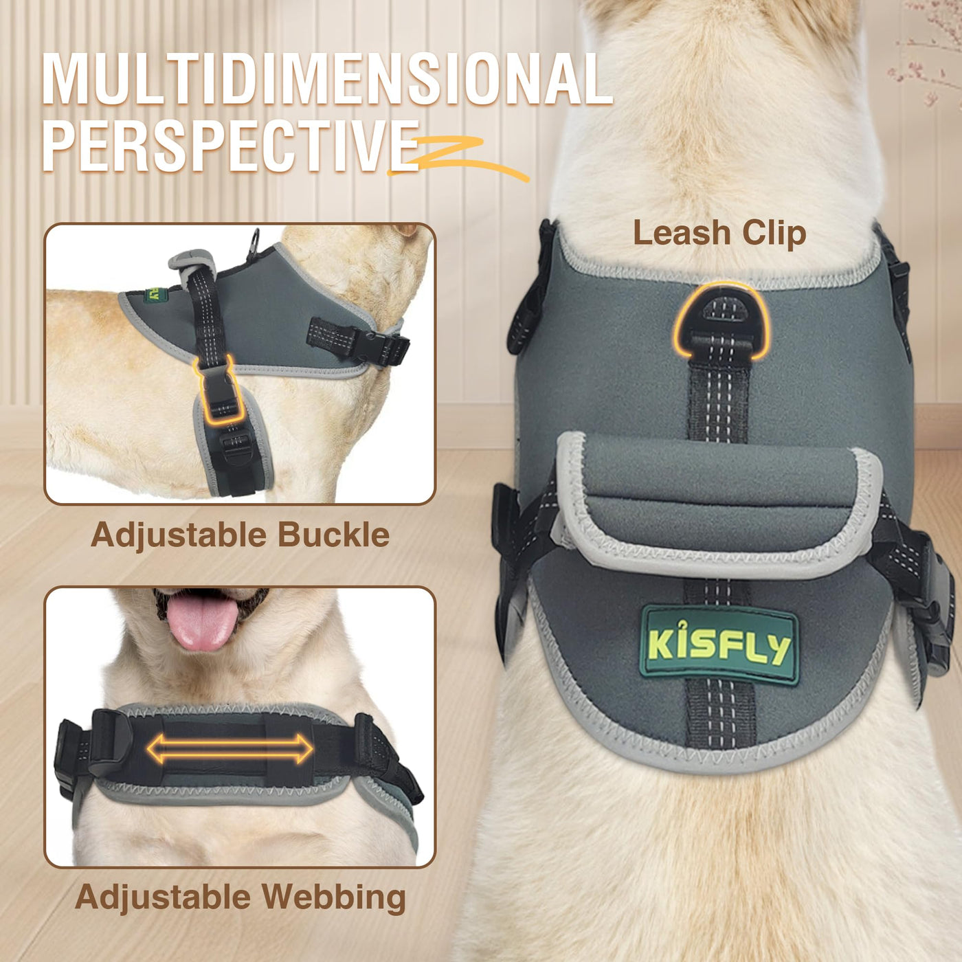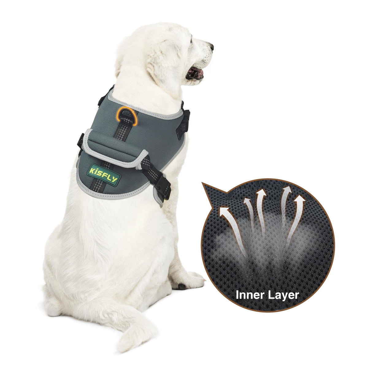 Kisfly No Pull Dog Harness With Reflective, No Choke Pet Vest, Adjustable Soft Padded, Walking And Training, Large With Handle,